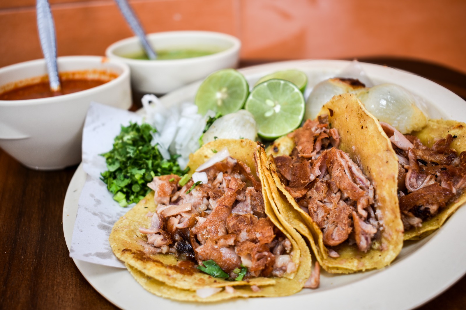 Medio kilo de suadero para compartir con tu familia, acompañado de salsa verde, roja, cebolla y cilantro.