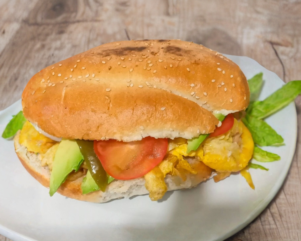 Huevos Revueltos + Aguacate, Jitomate, Cebolla , Mayonesa y Picante.