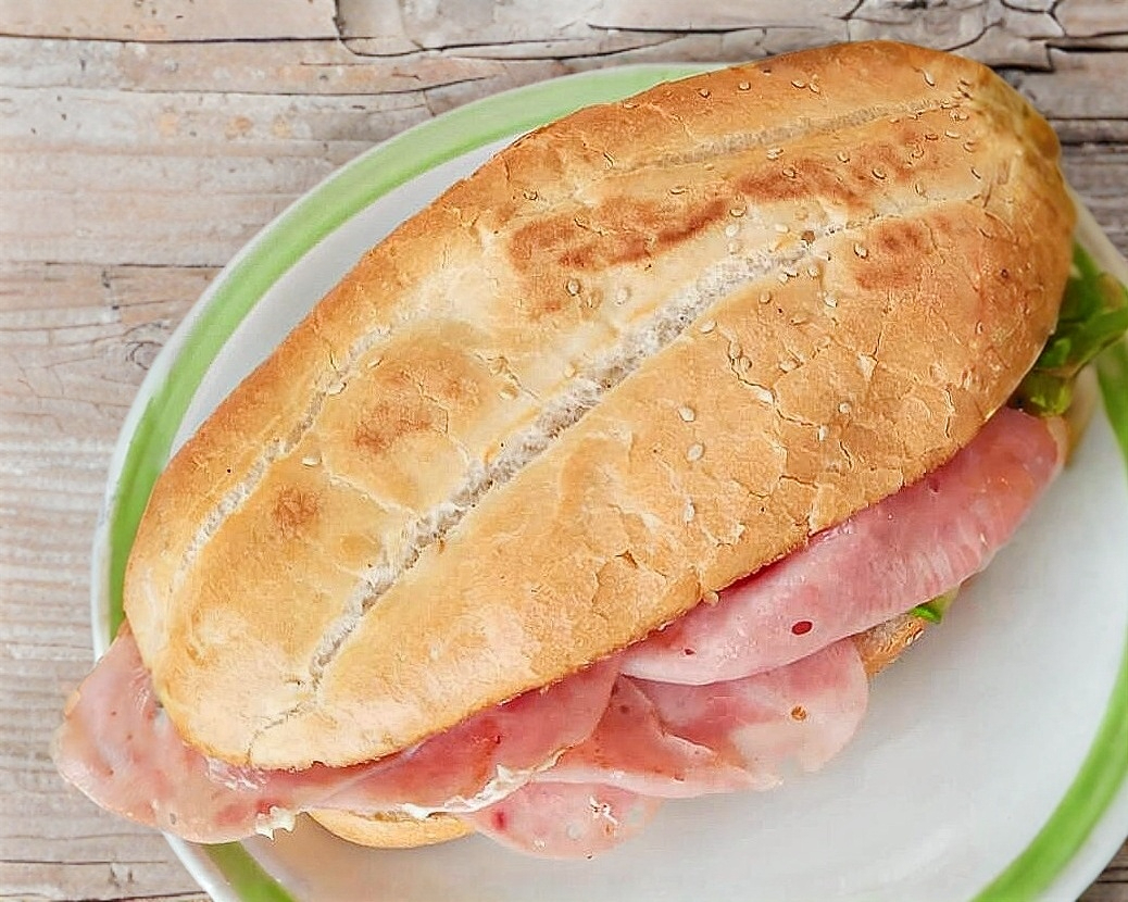 Jamón de Pierna Tipo York + Aguacate, Jitomate, Cebolla , Mayonesa y Picante.