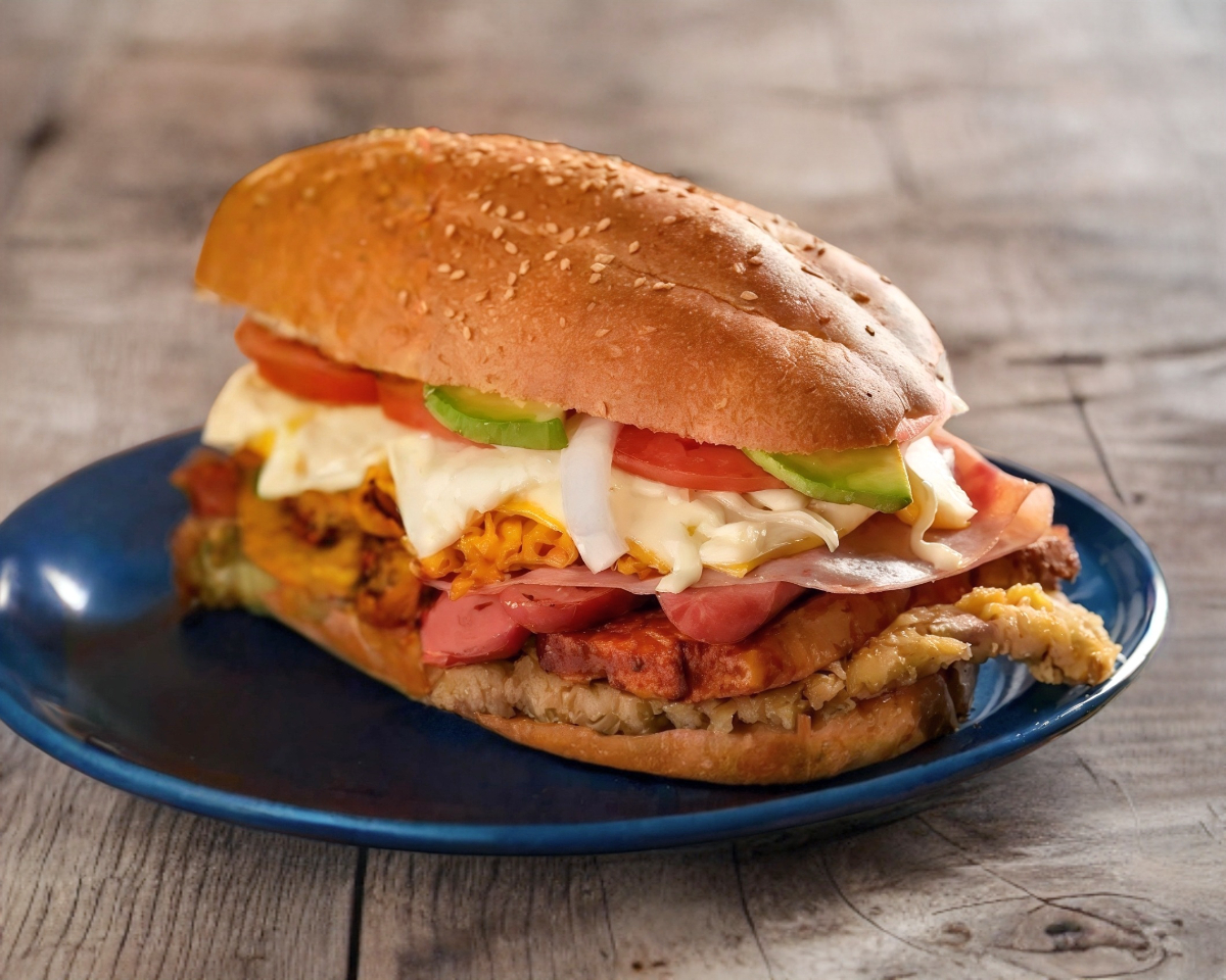 "Torta de Telera Grande"/ Milanesa de Res, Pierna Española, Quesillo, Tocino, Salchicha de Pavo, Pechuga Empanizada y Piña