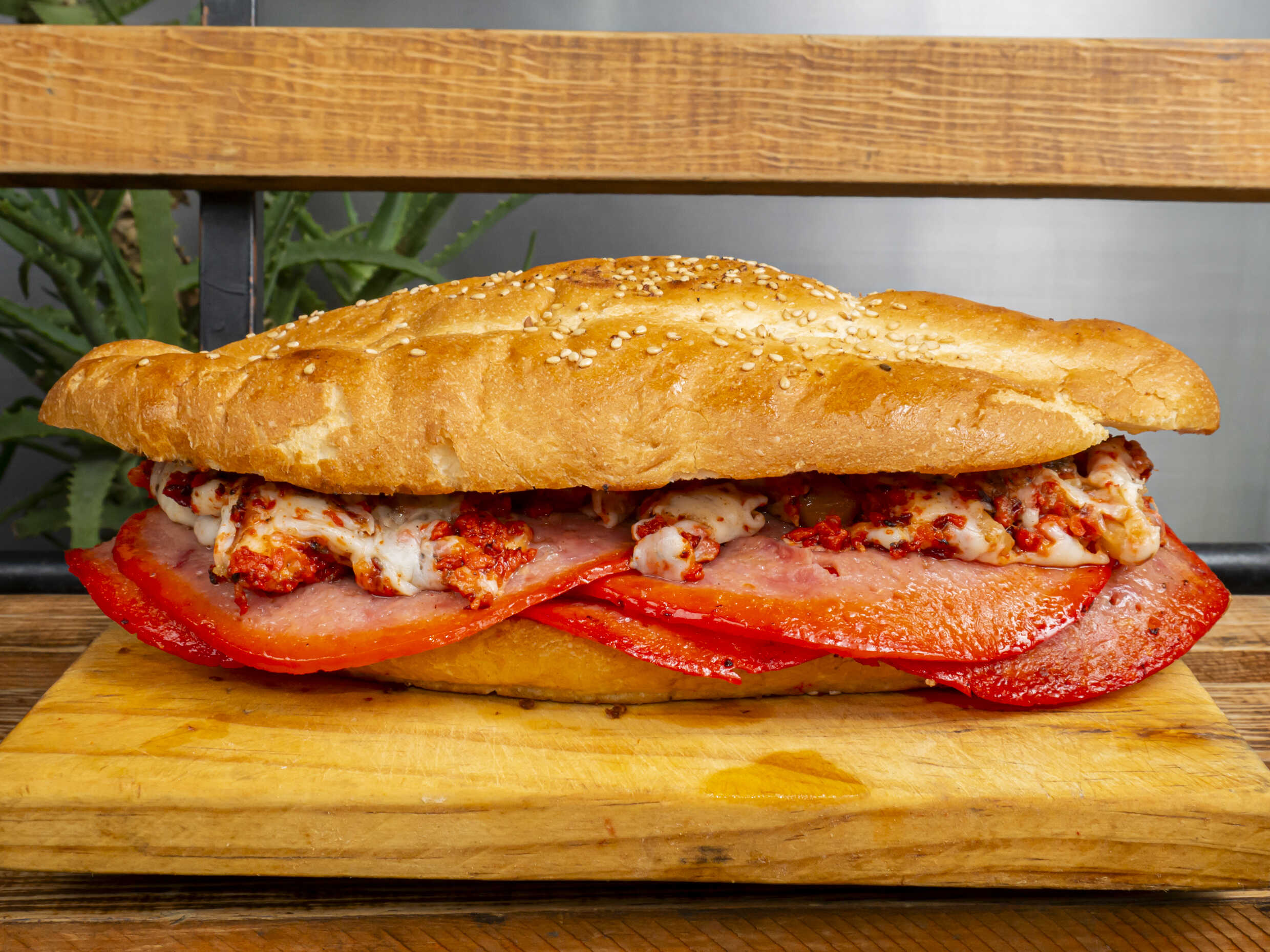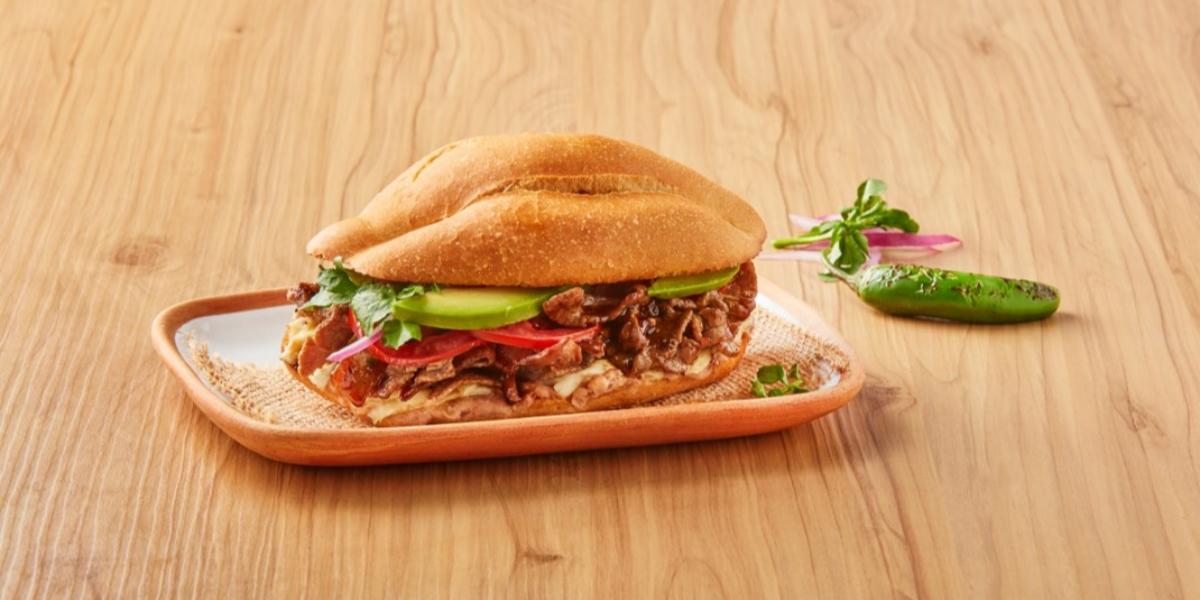 (una persona) Telera doble, Milanesa de puerco, salchicha, pierna española, jamón, chorizo, frijol y quesillo