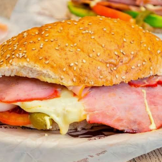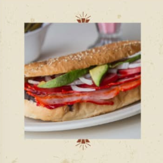 Un poco de todos nuestros ingredientes como son: milanesa de pollo o de res, salchicha, jamón, queso Oaxaca, queso amarillo,queso de puerco, pierna española y mas : lleva lechuga, jitomate, cebolla, aguacate, mayonesa, frijoles, chipotle o rajas y es sobre pan gigante.