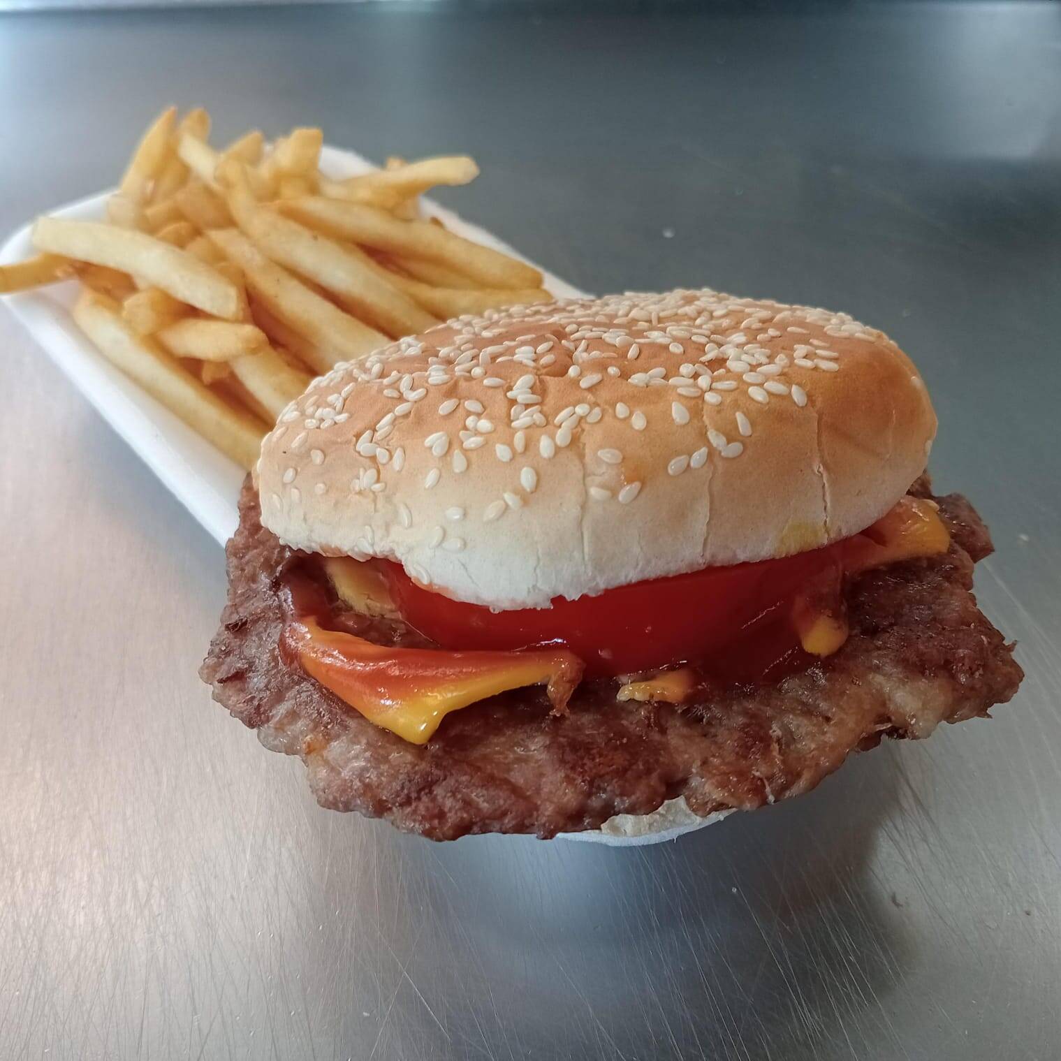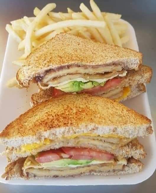 Carne, jamón, quesillo piña y guarnición de papas a la francesa