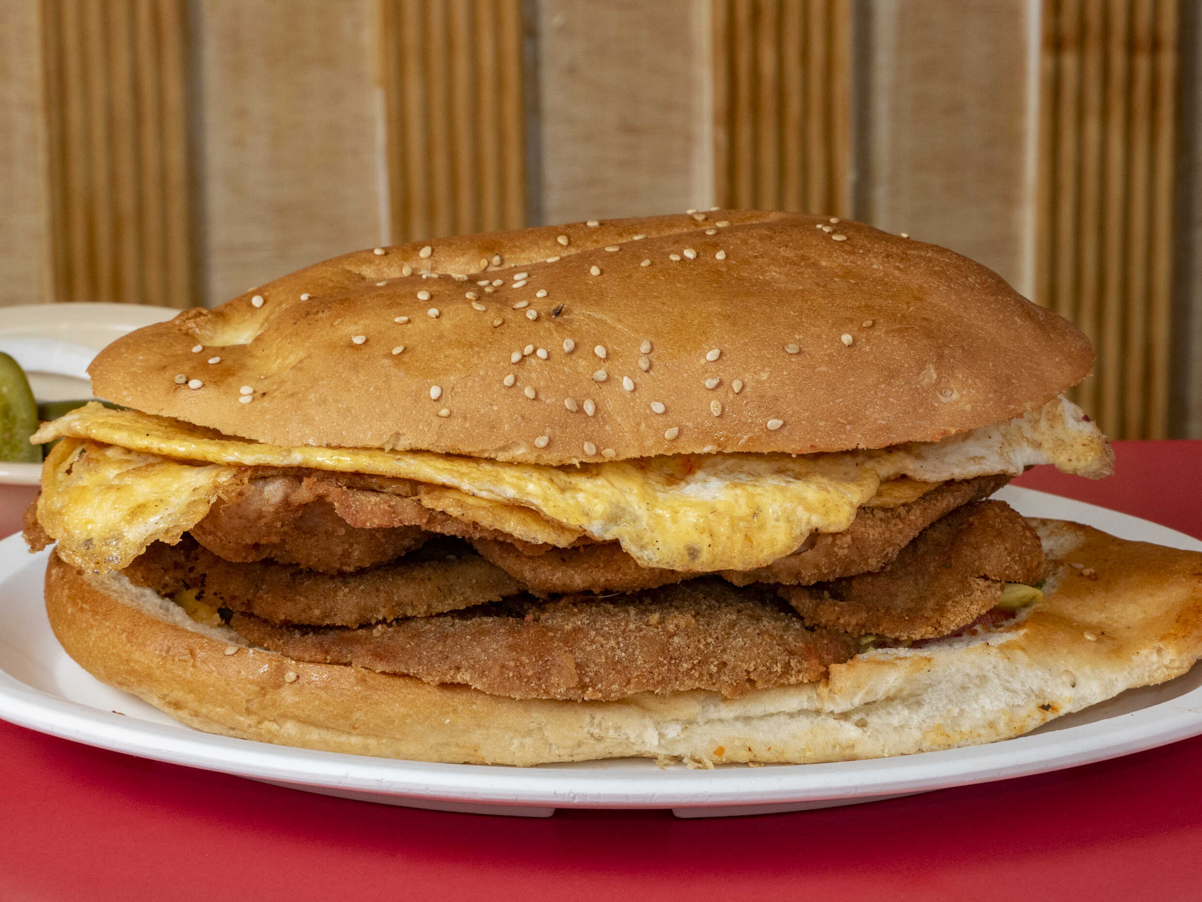 Milanesa, quesillo y huevo.