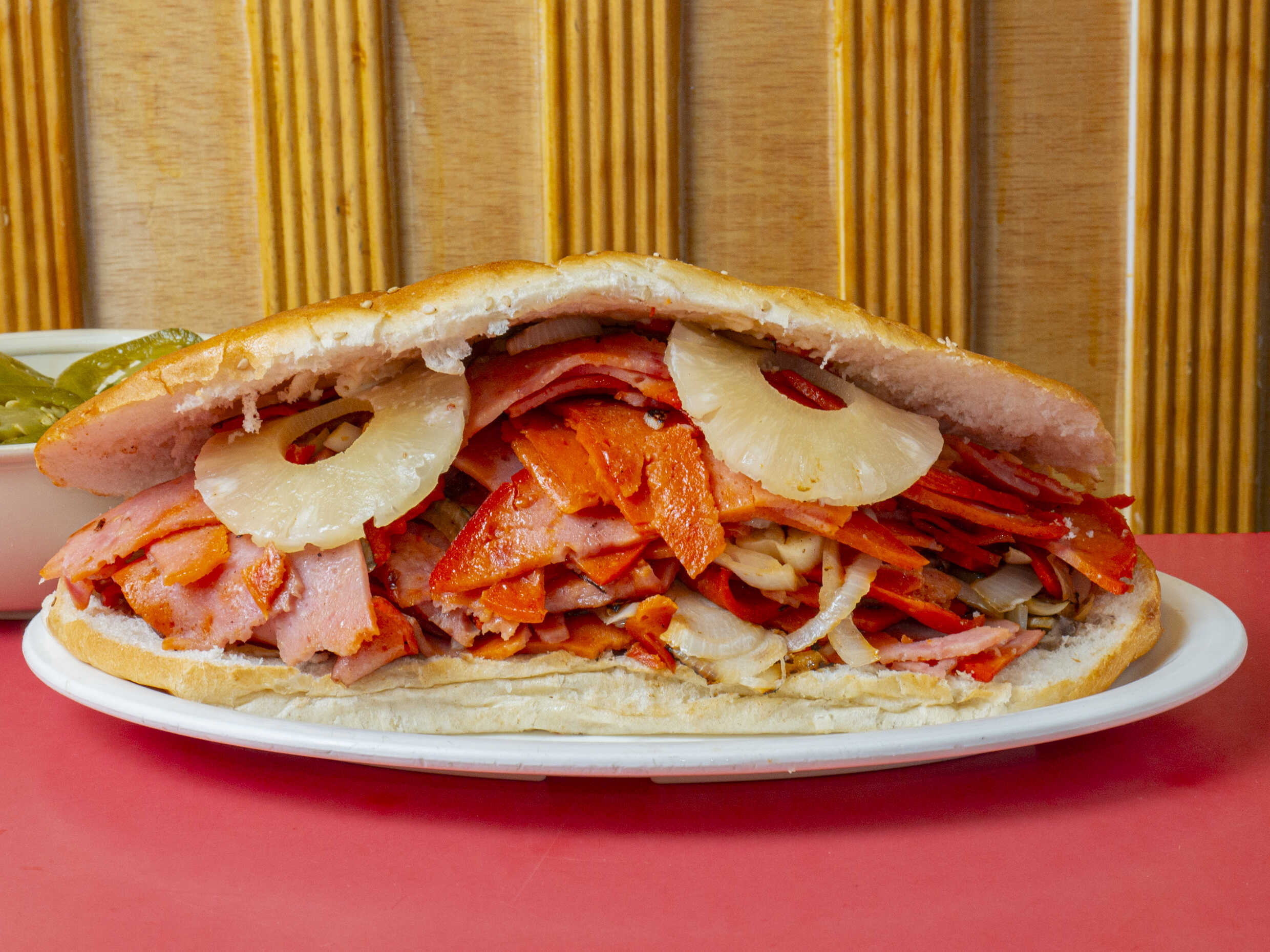 Jamón, quesillo y piña.