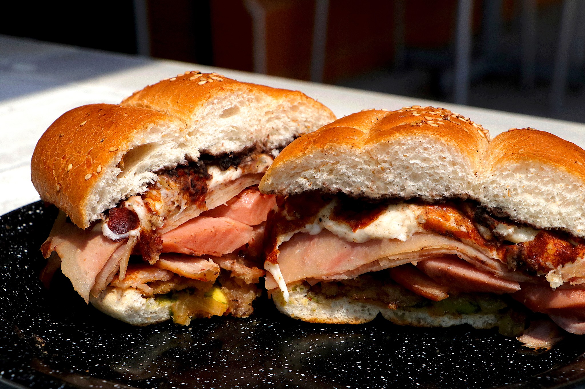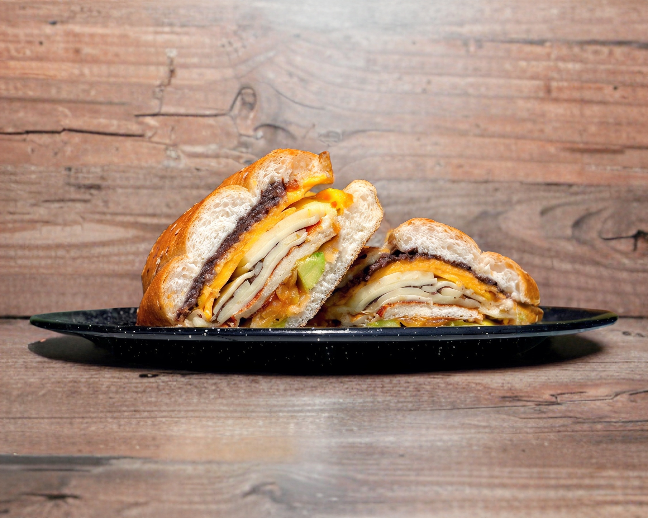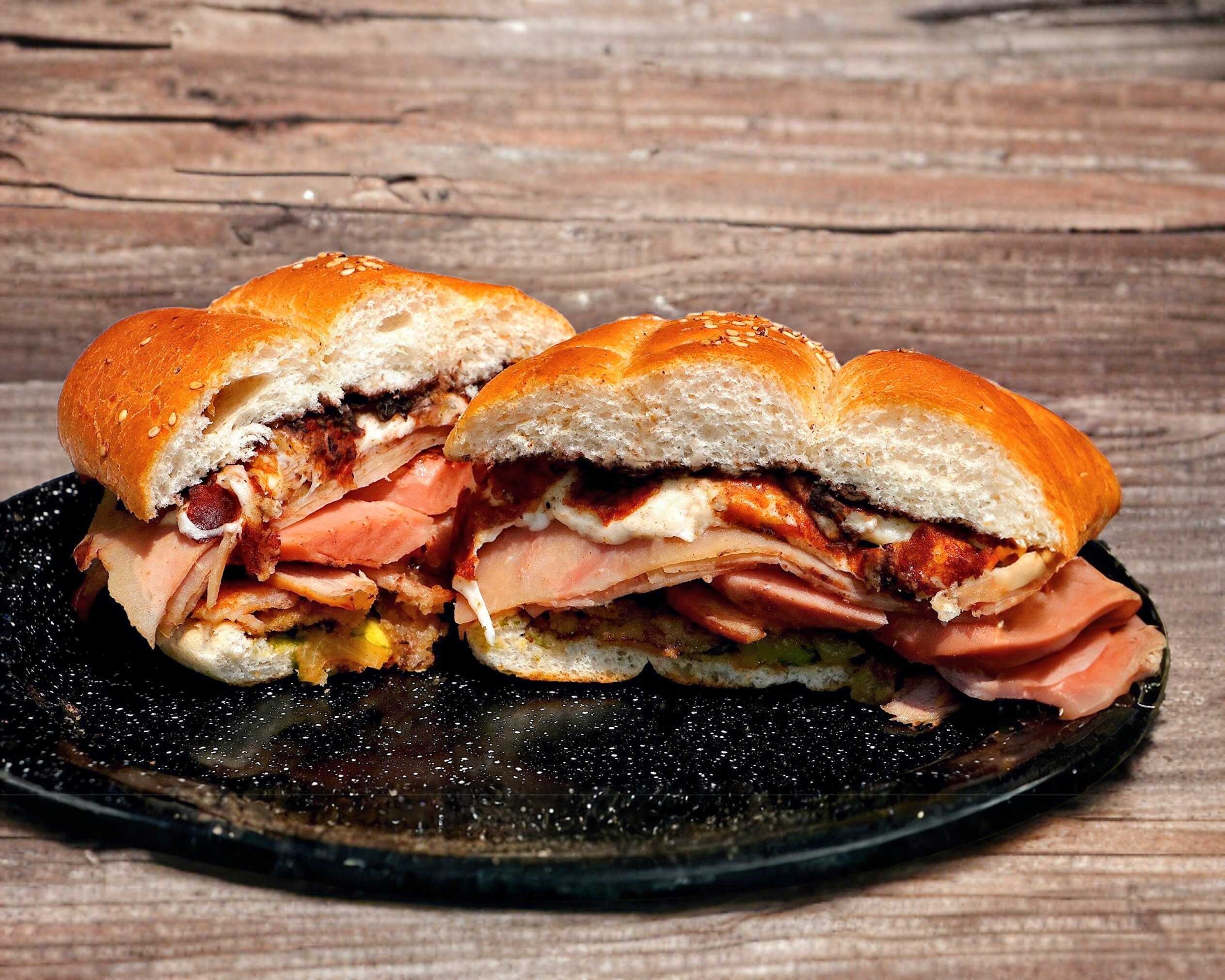 Pavo, milanesa de res, quesillo y queso amarillo.