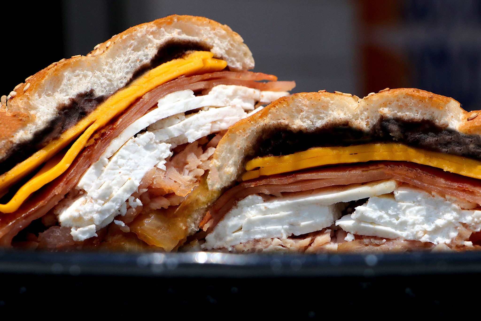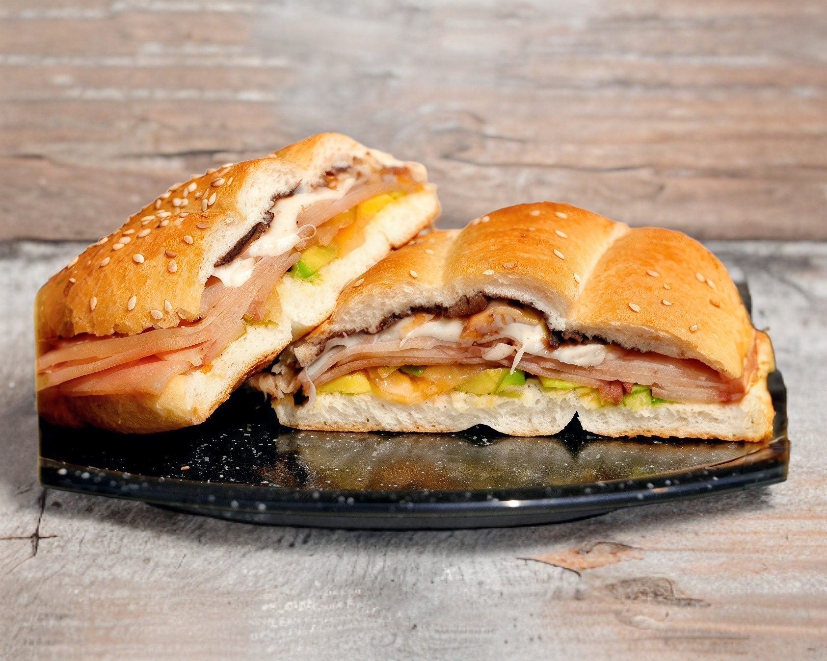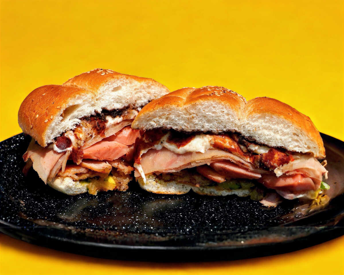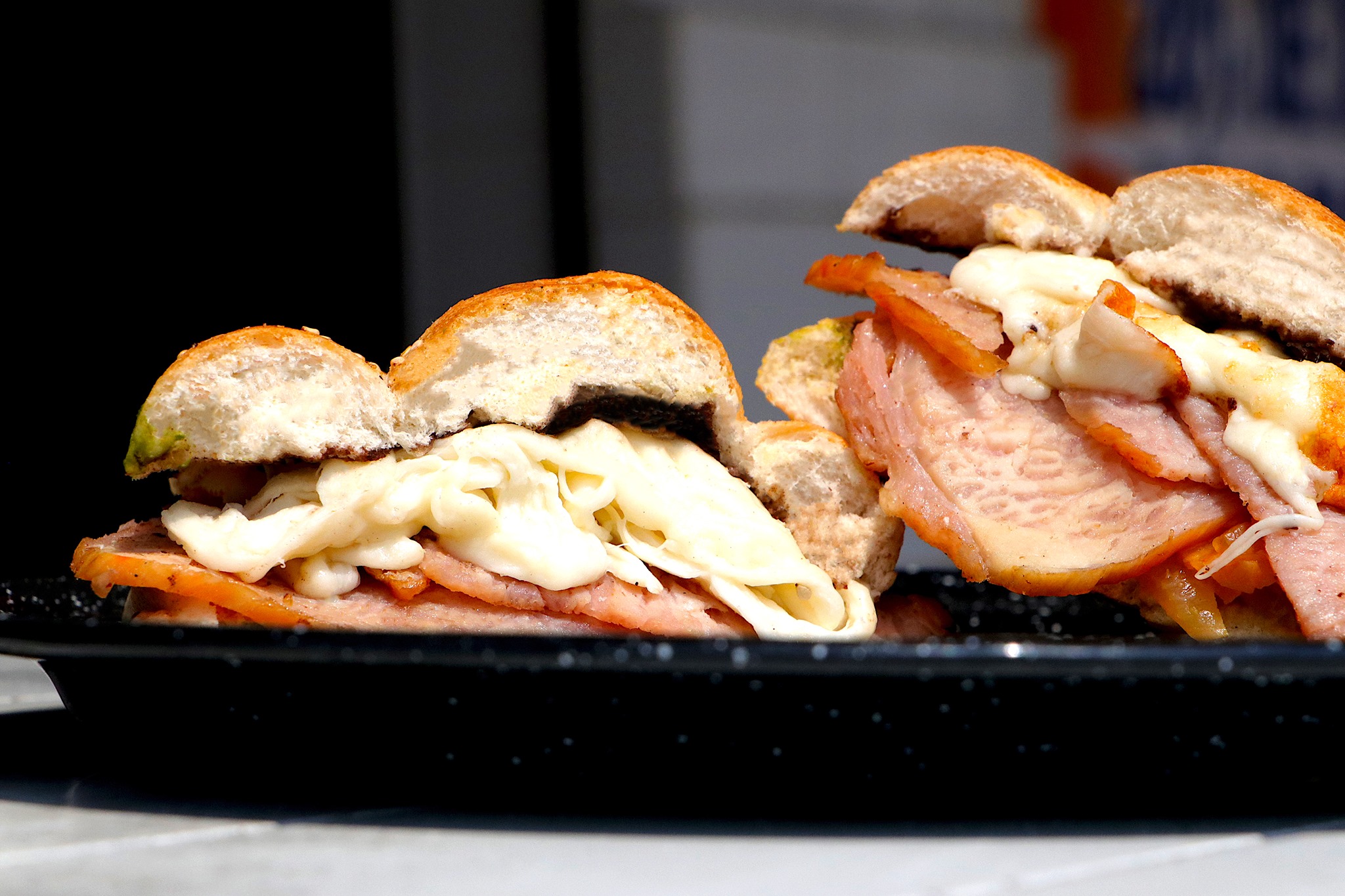 Pierna horneada, jamón, queso blanco y queso amarillo.