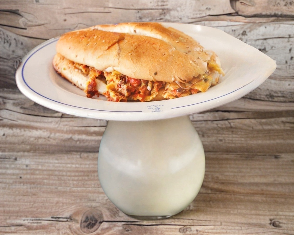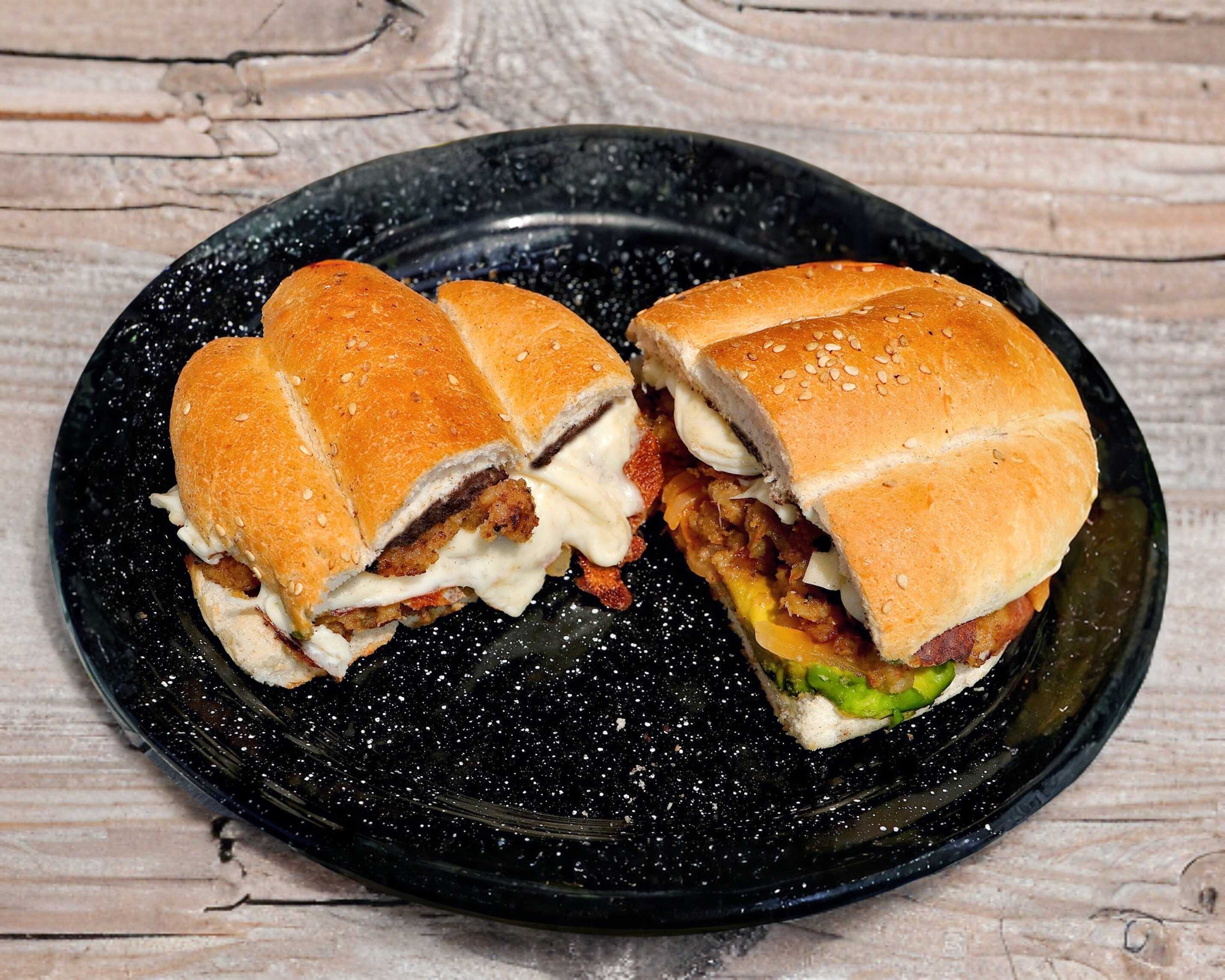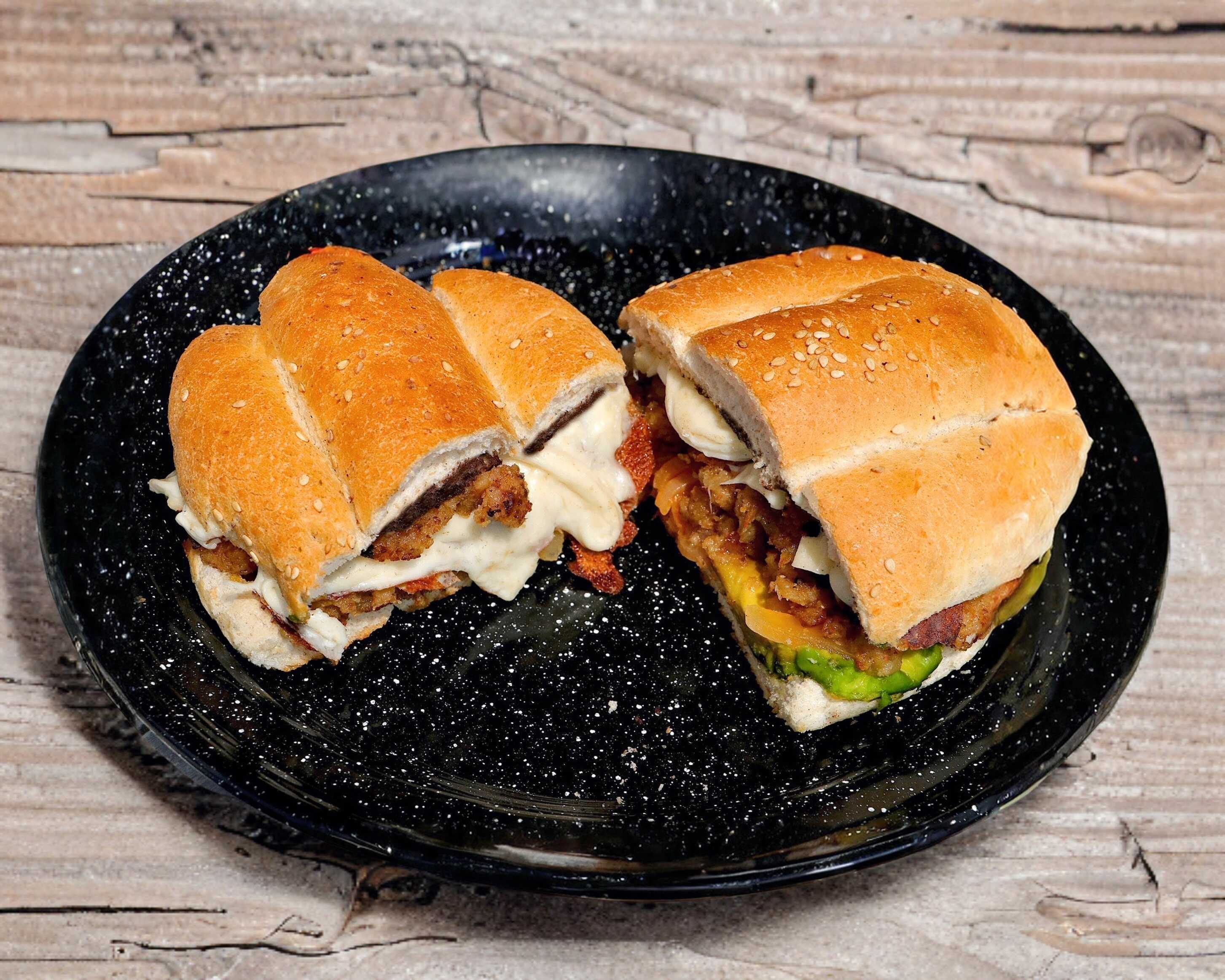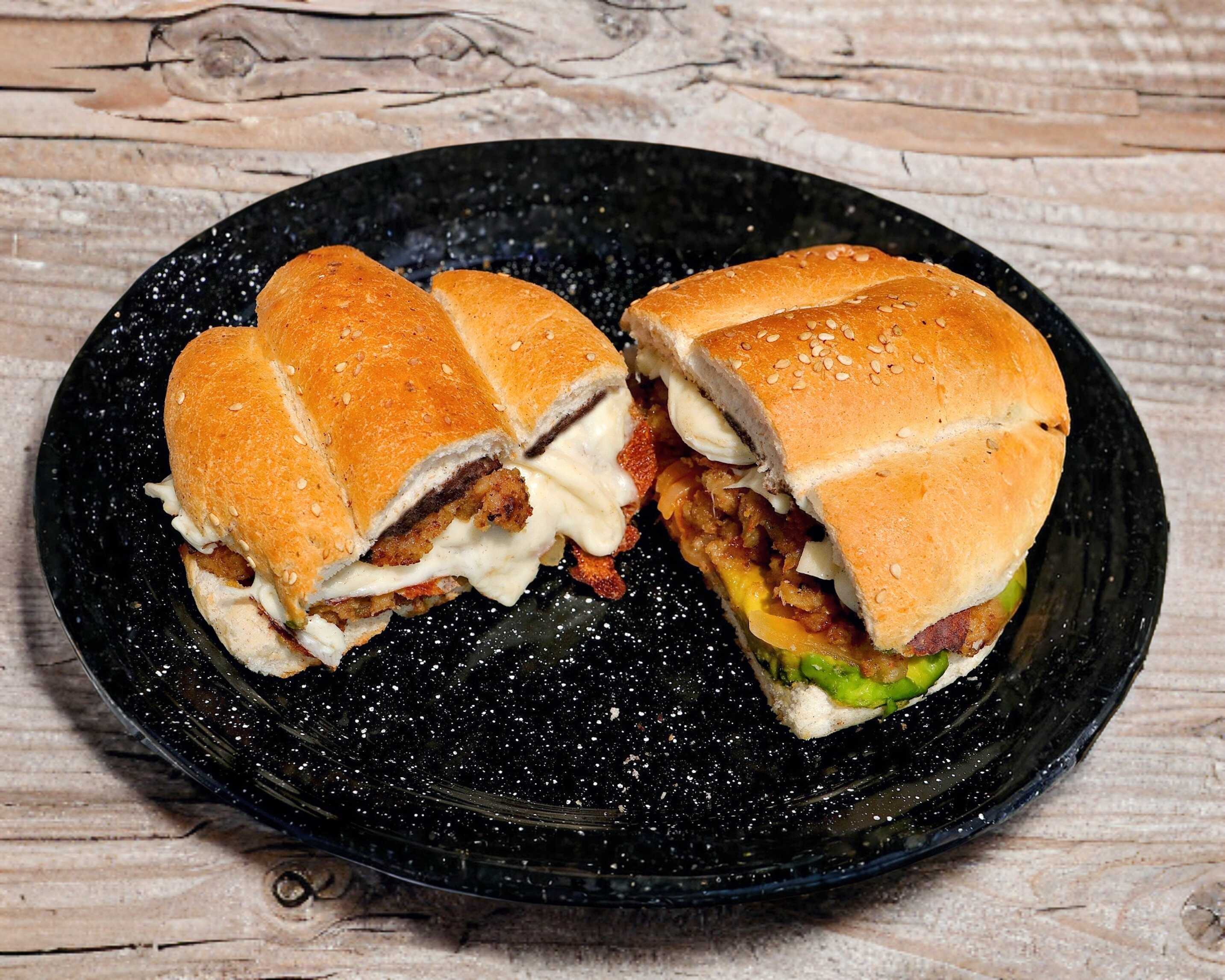 Milanesa de res, chorizo, quesillo, tocino y queso amarillo.