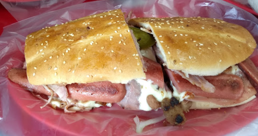 Milanesa de res, jamón, queso chihuahua, tocino, queso amarillo, salchicha, huevo y pierna.
