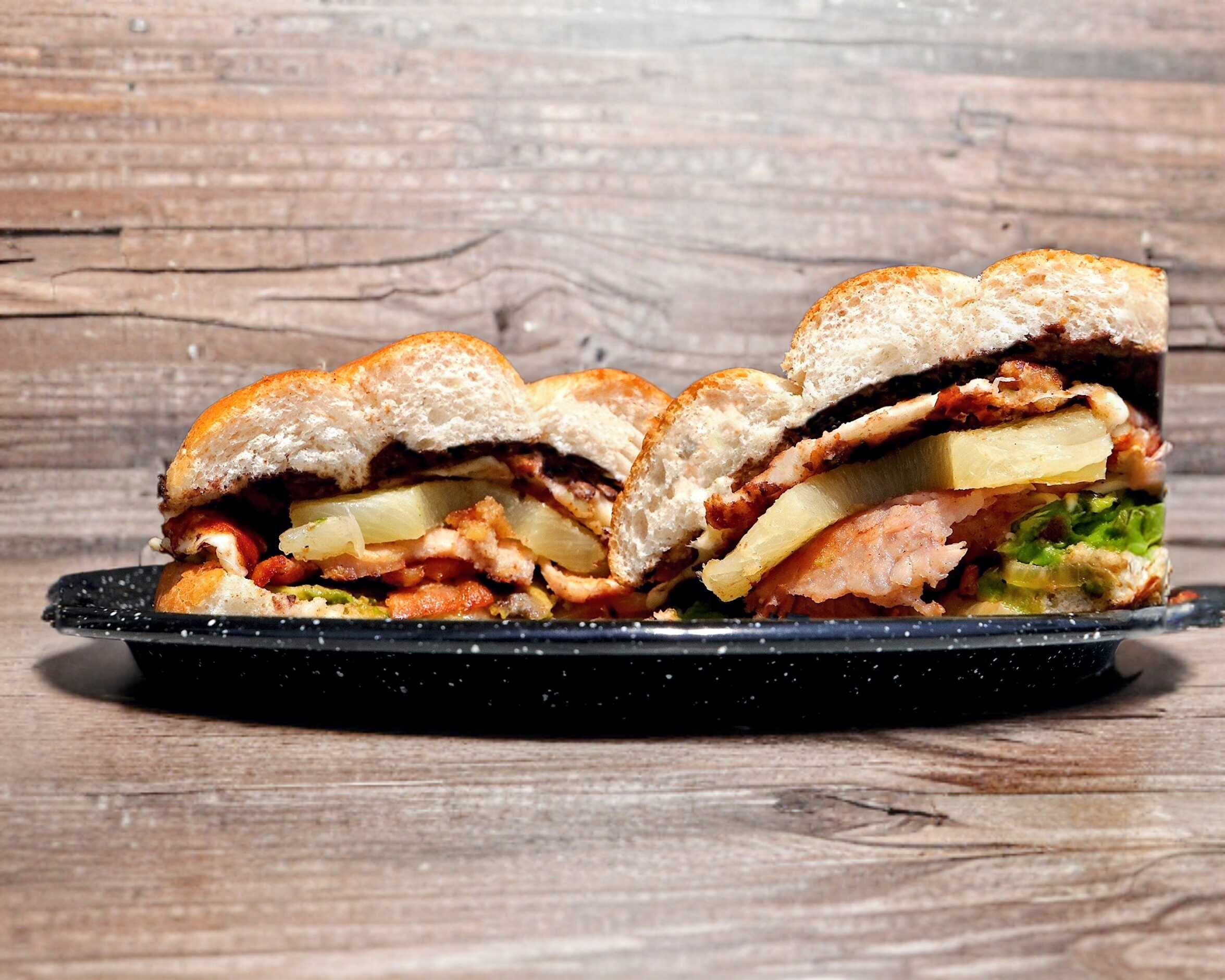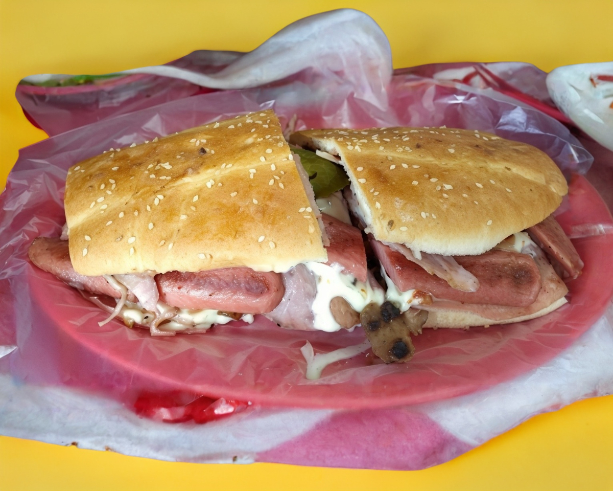 Doble carne de res, jamón, queso amarillo y quesillo.