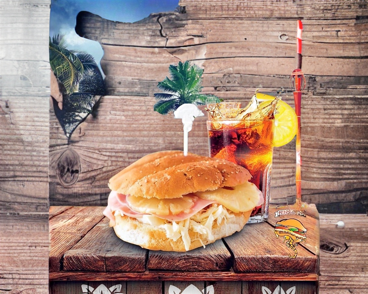Hipoburger Tropical (hamburguesa).*1 + Papas a La Francesas*1 + Refresco de Lata Sabor de acuerdo a disponibilidad*1
