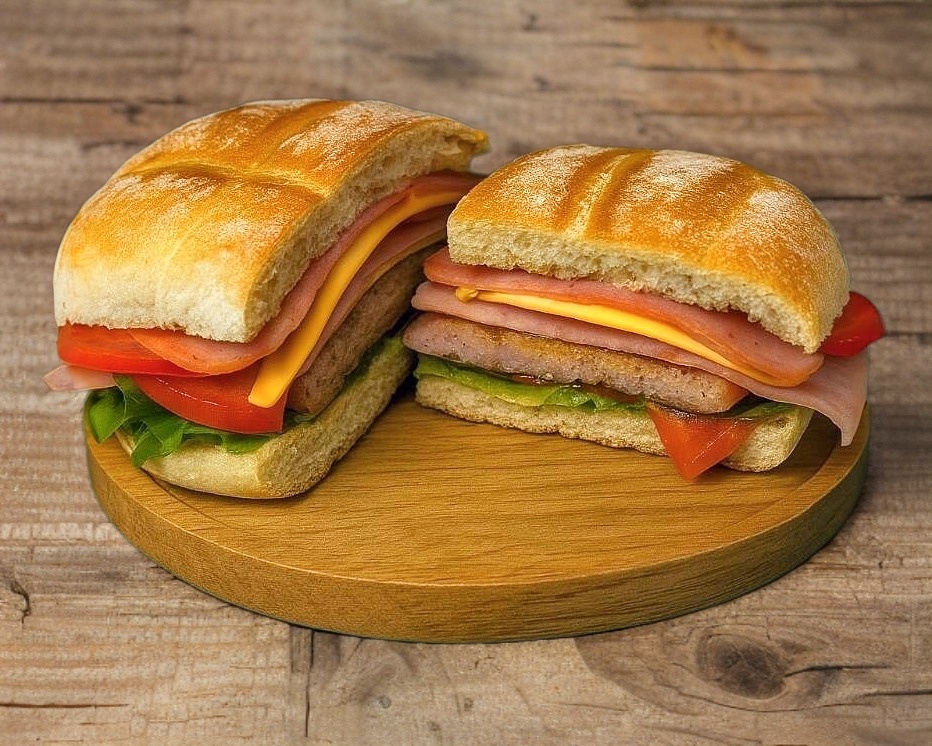 Una mezcla que será insuperable: Jamón de pierna, manchego cremoso, Oaxaca estirado y amarillo fundido, todo entre pan bien dorado. El sándwich perfecto para los verdaderos fans del queso.
