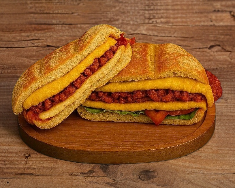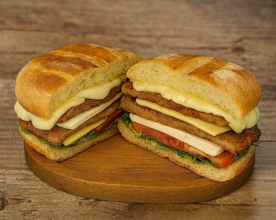 Crujiente milanesa y longaniza doradita, con queso Oaxaca y panela, más verduras frescas. Todo esto en telera calientita. ¡Una torta que se siente completa desde el primer bocado!