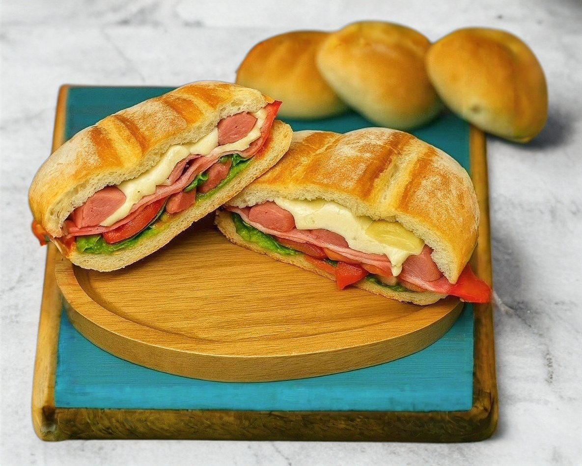 La clásica de siempre: jamón con queso panela y verduras, en telera calientita. ¡Suave, sabrosa y sin complicaciones!