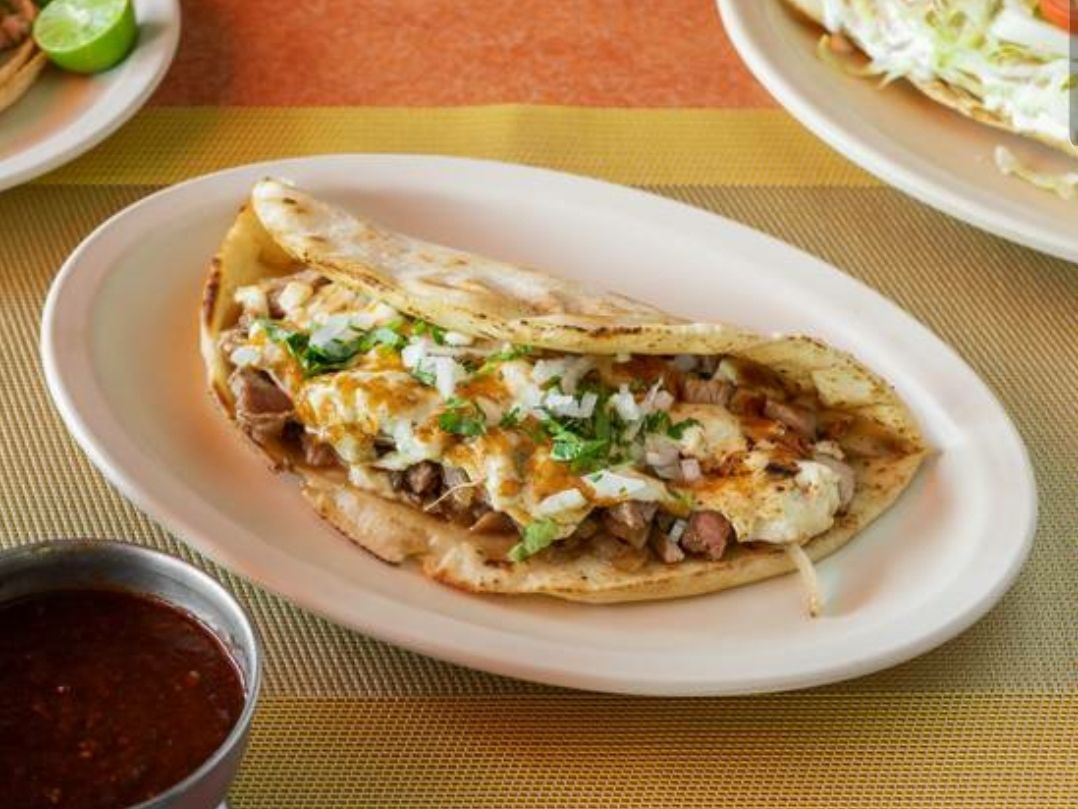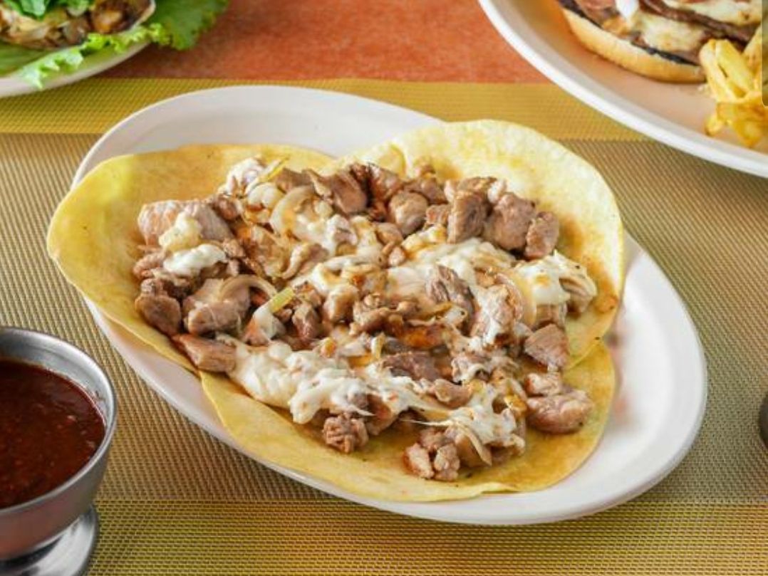 Bistec, chorizo, quesillo, aguacate, jitomate y cebolla.