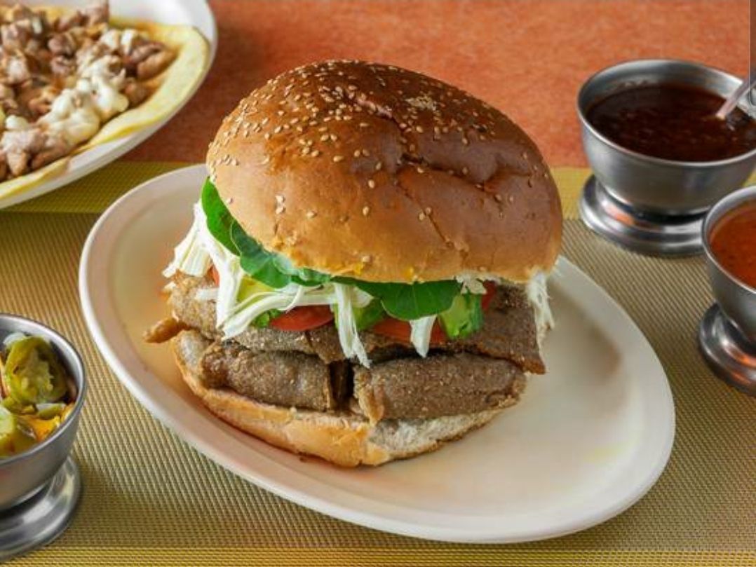 Milanesa, chorizo, quesillo, aguacate, jitomate y cebolla.