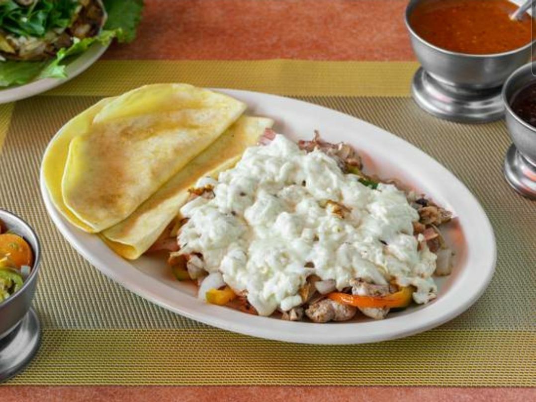 Queso blanco, queso amarillo, quesillo, aguacate, jitomate y cebolla.