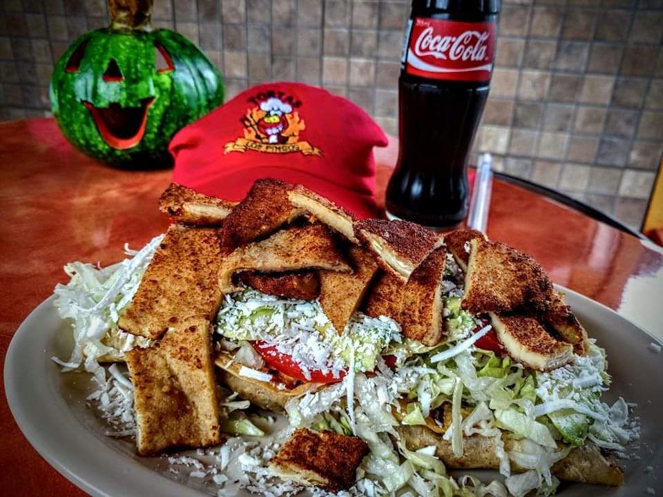 Milanesa, queso blanco, quesillo, pápalo y un toque de aceite de oliva.
