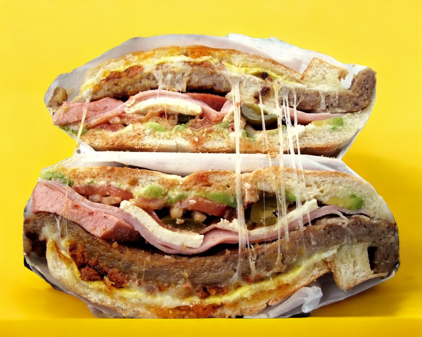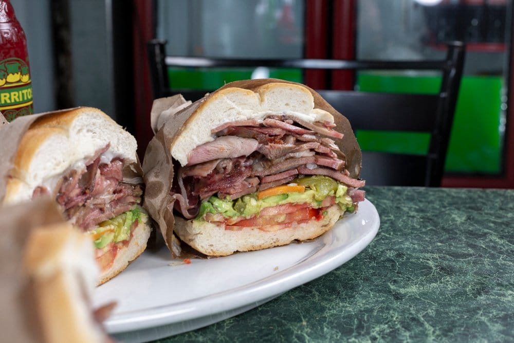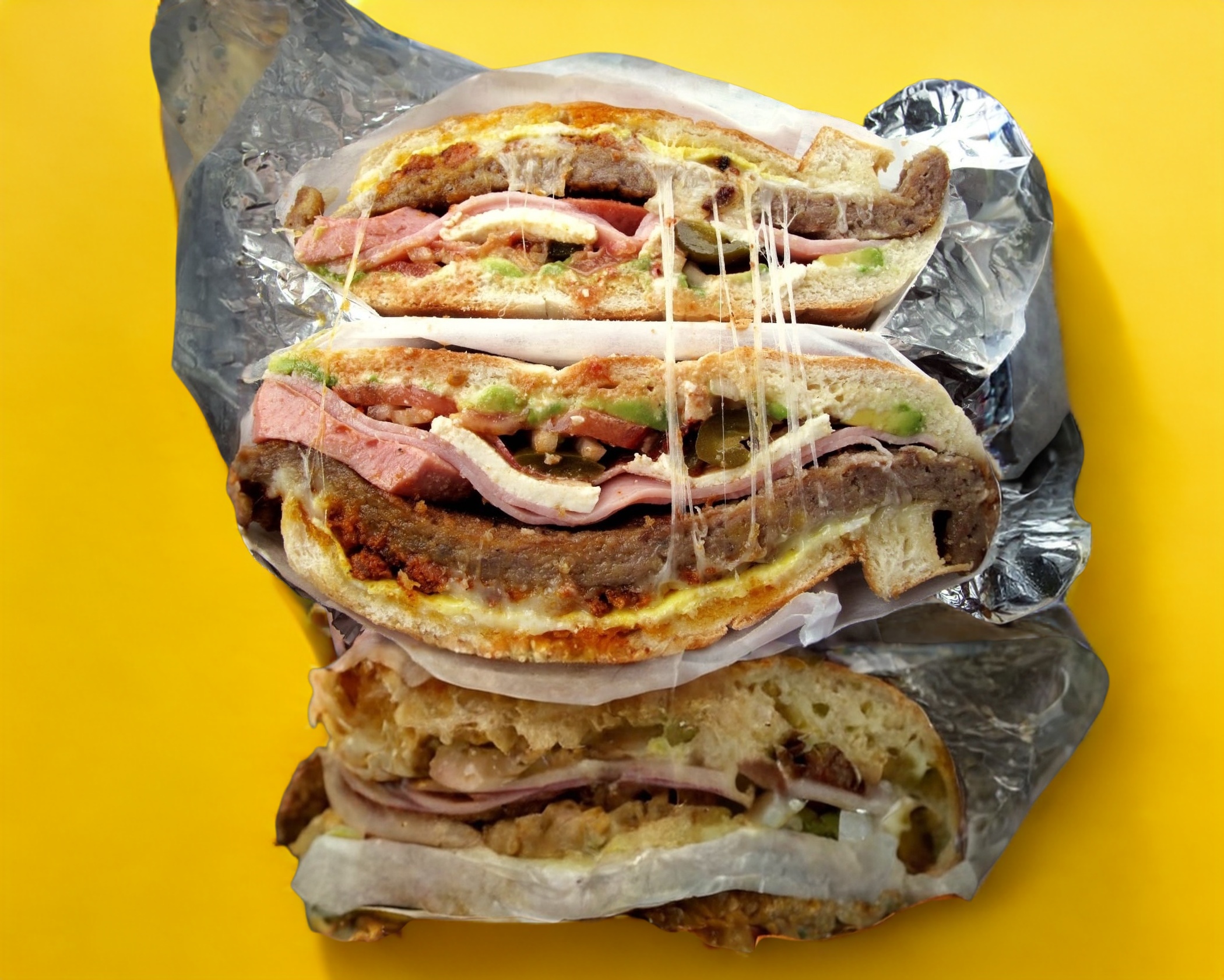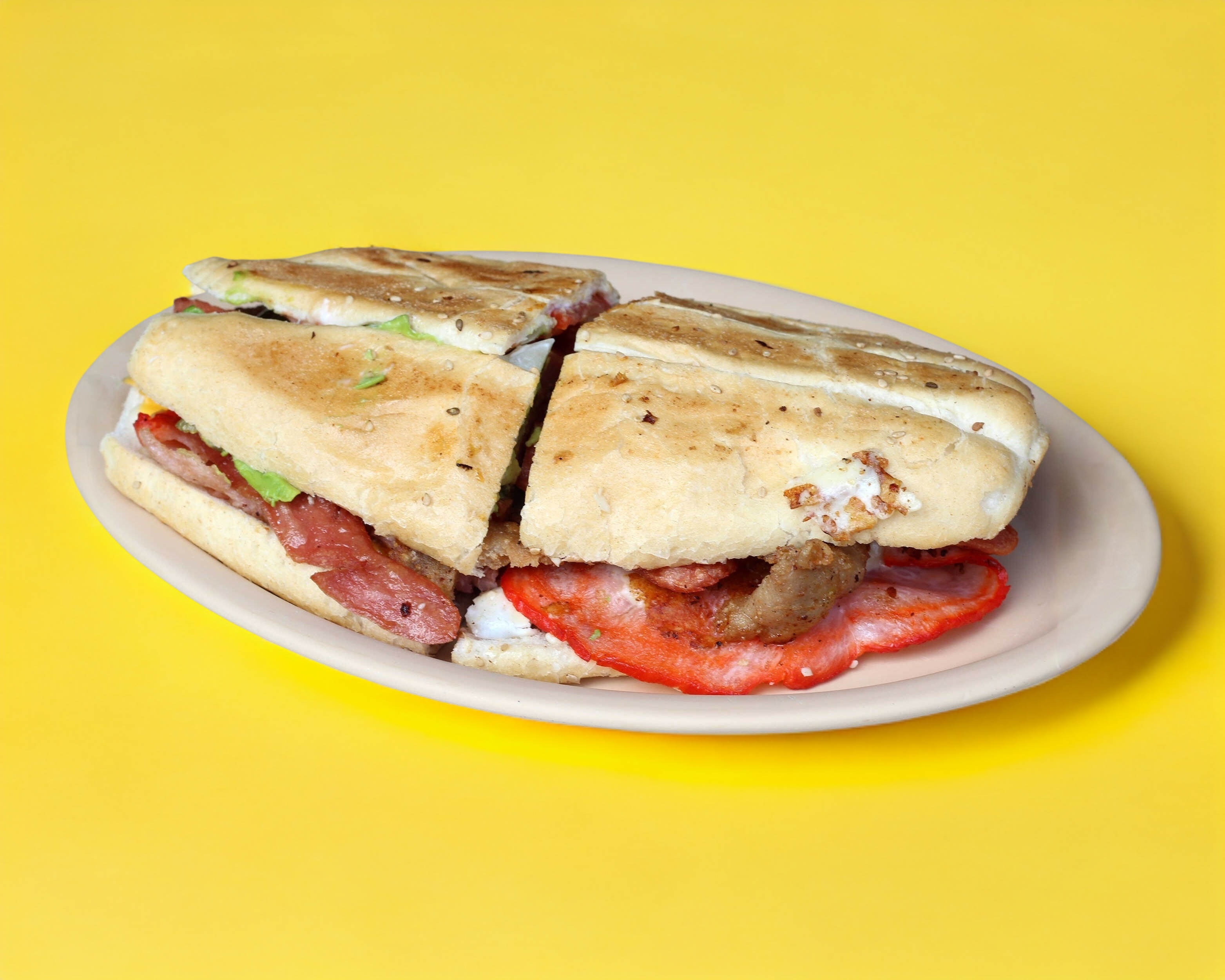 1 pieza Torta partida en dos aproximadamente 25 cm, pan tradicional, relleno de pierna, milanesa y quesillo jitomate, tomate, cebolla y chipotle.
