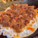 Delicioso alambre de carne al pastor carne, pimiento, cebolla, tocino, piña y mezcla de quesos ( Oaxaca y mozzarella) 150 gr