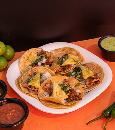 Rica orden de taquitos de carne al pastor en tortilla de maíz del #10.