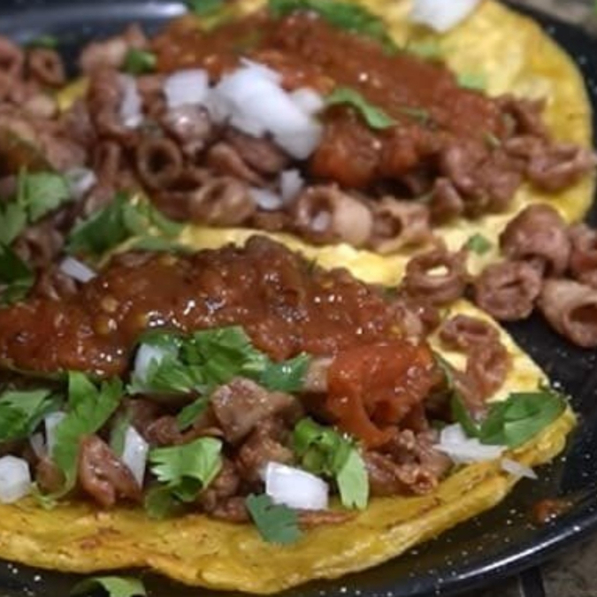 Rica orden de taquitos de tripa doradita en tortilla de maíz del #10.
