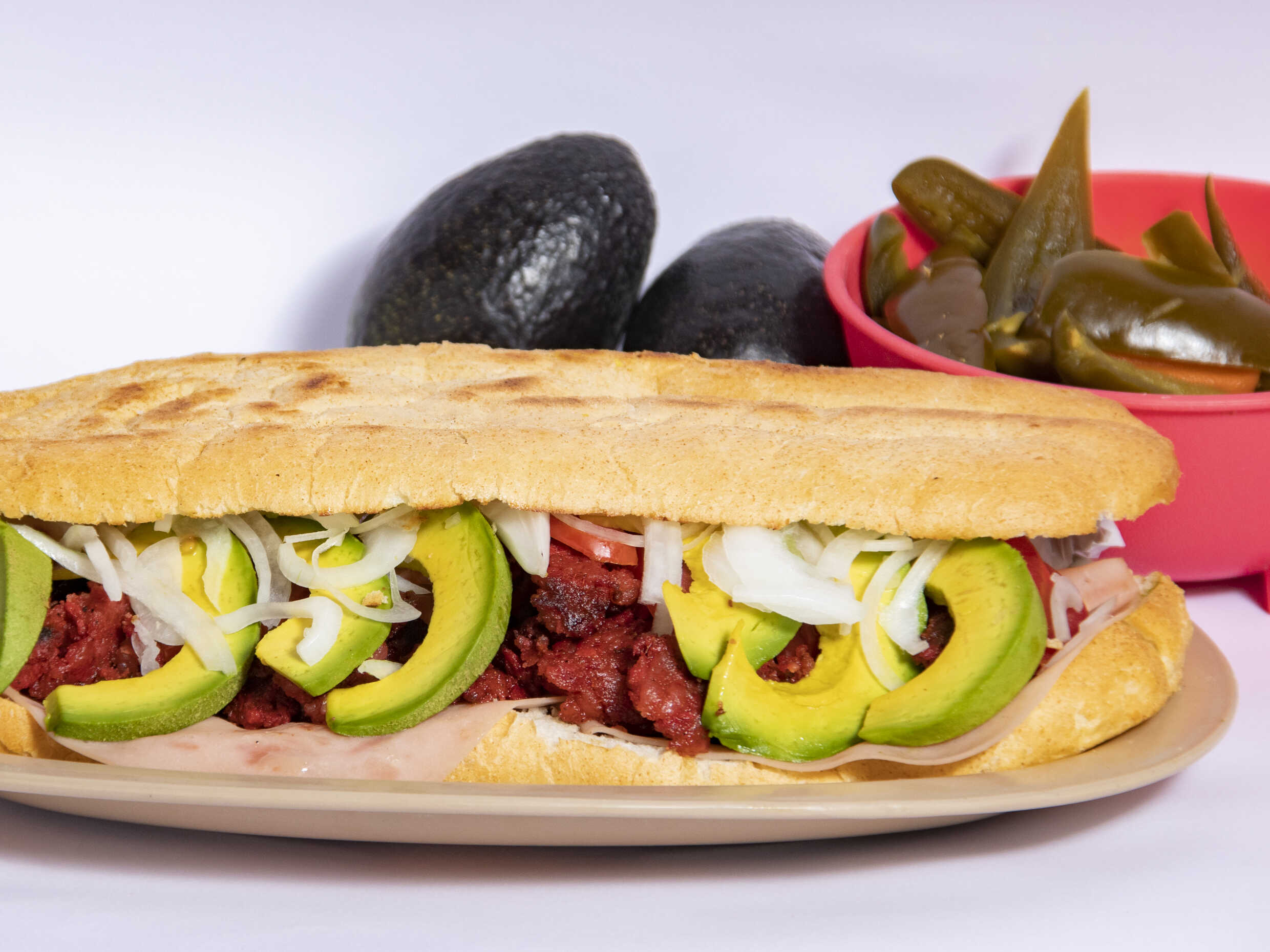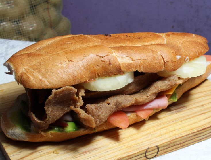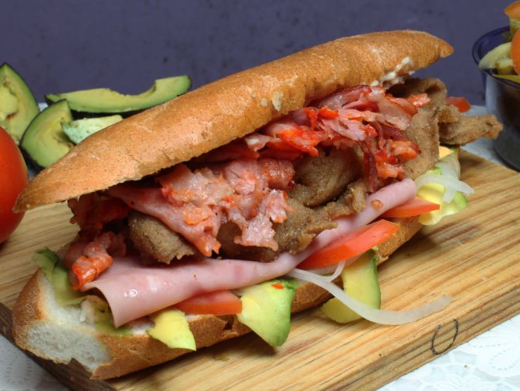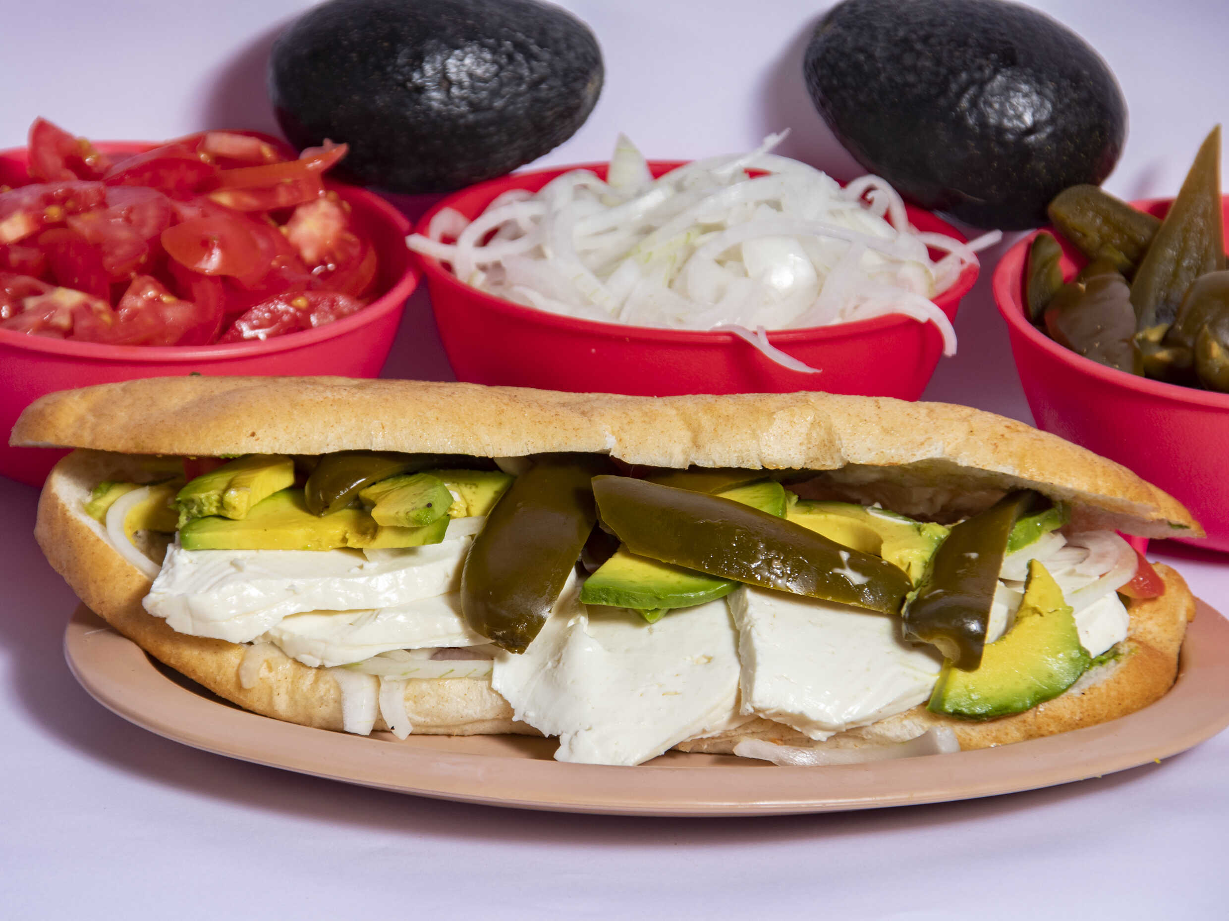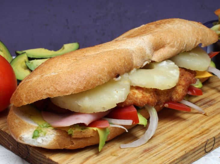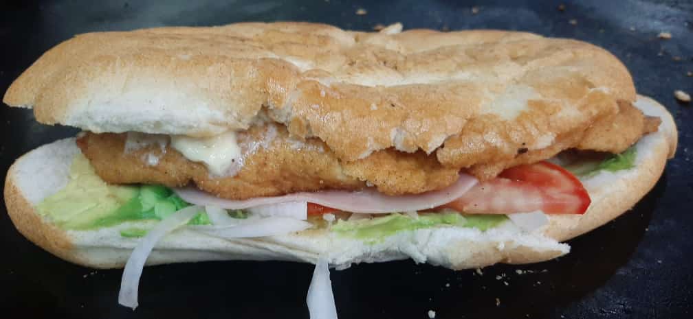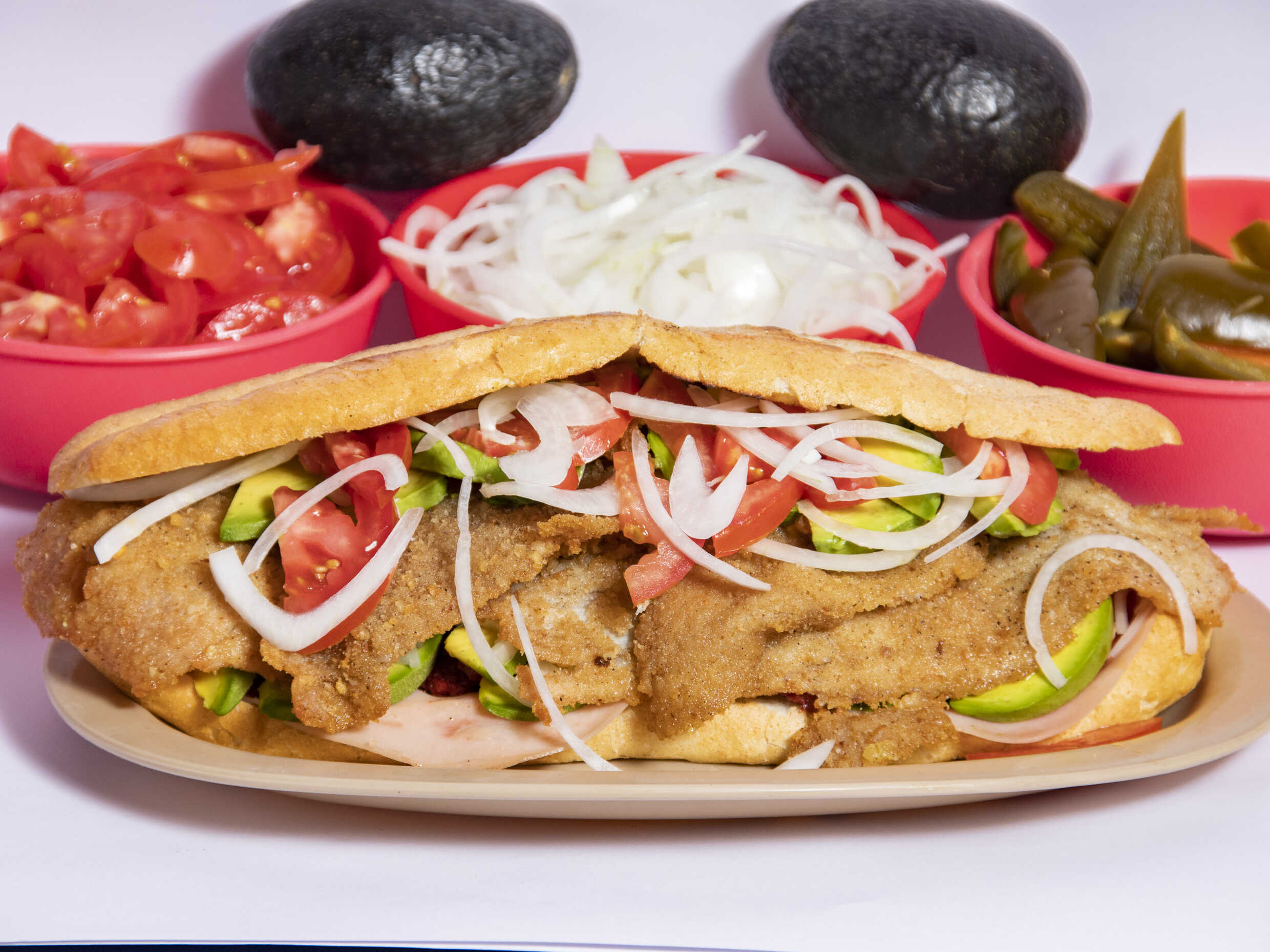 1 Deliciosa milanesa con quesillo Oaxaca, aguacate, jitomate y cebolla, servida en pan artesanal de 22 cm.