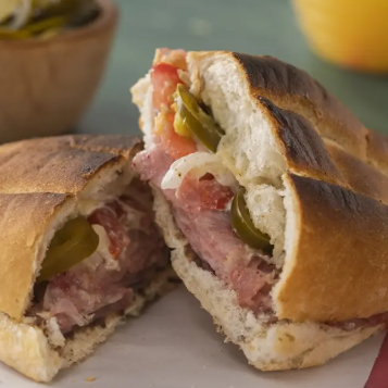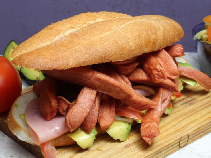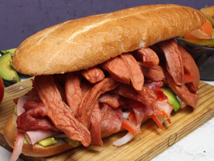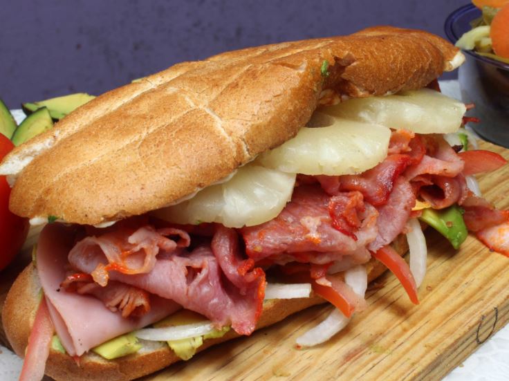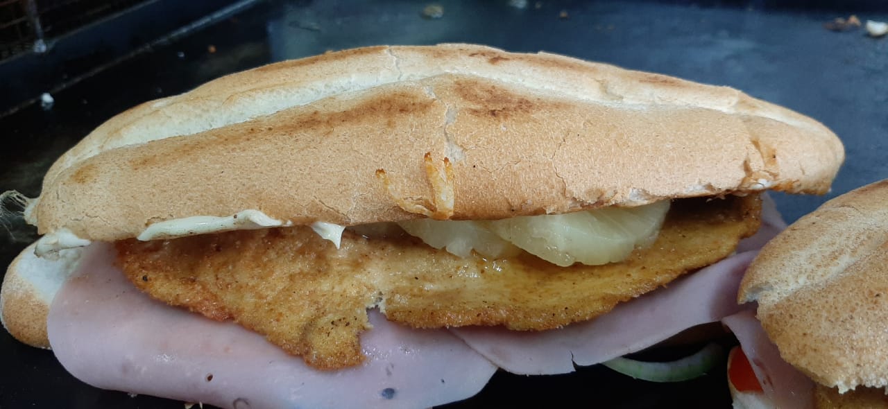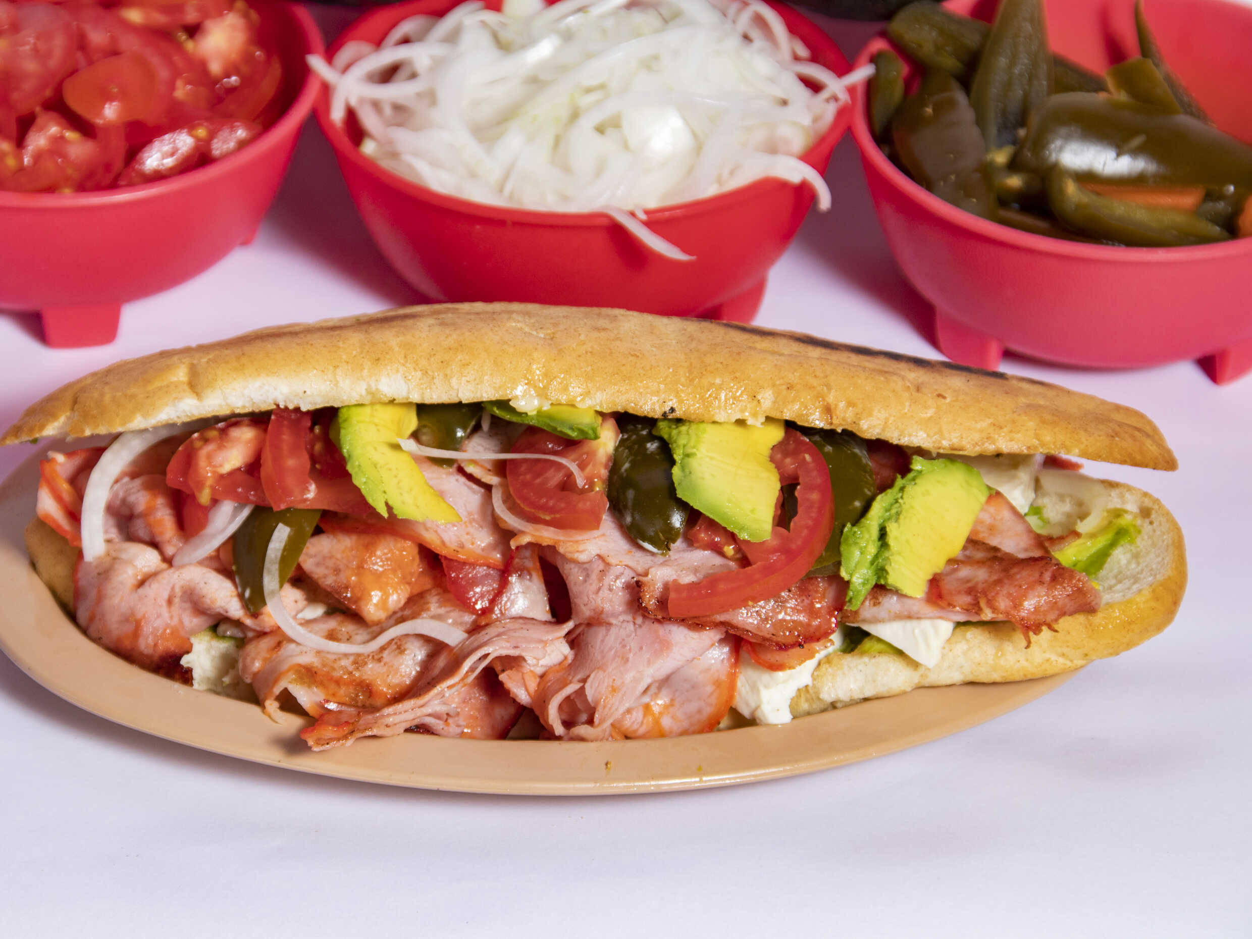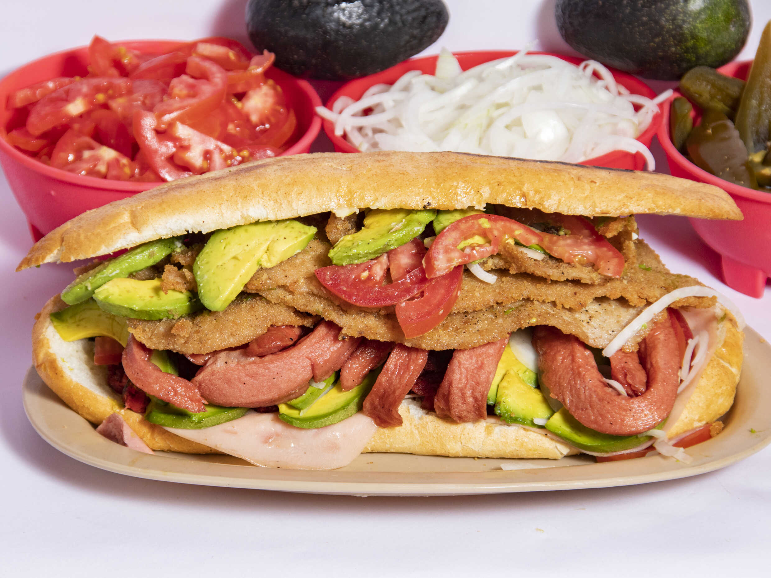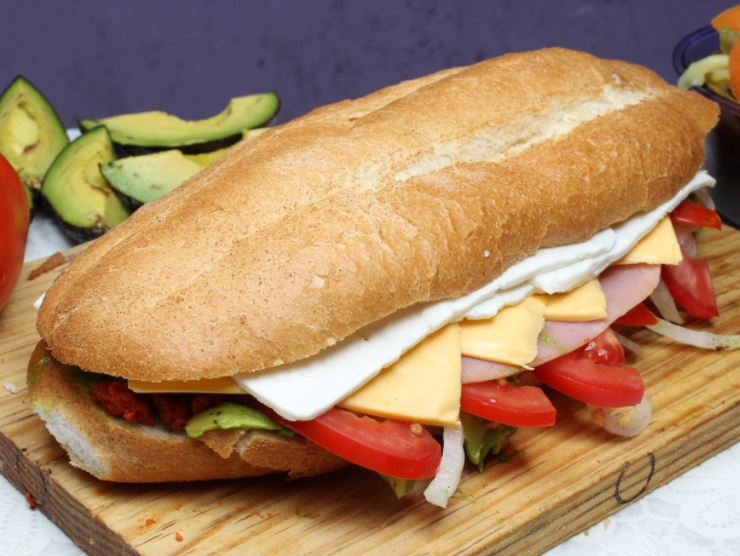 1 Deliciosa milanesa con quesillo Oaxaca, aguacate, jitomate y cebolla, servida en pan artesanal de 22 cm.