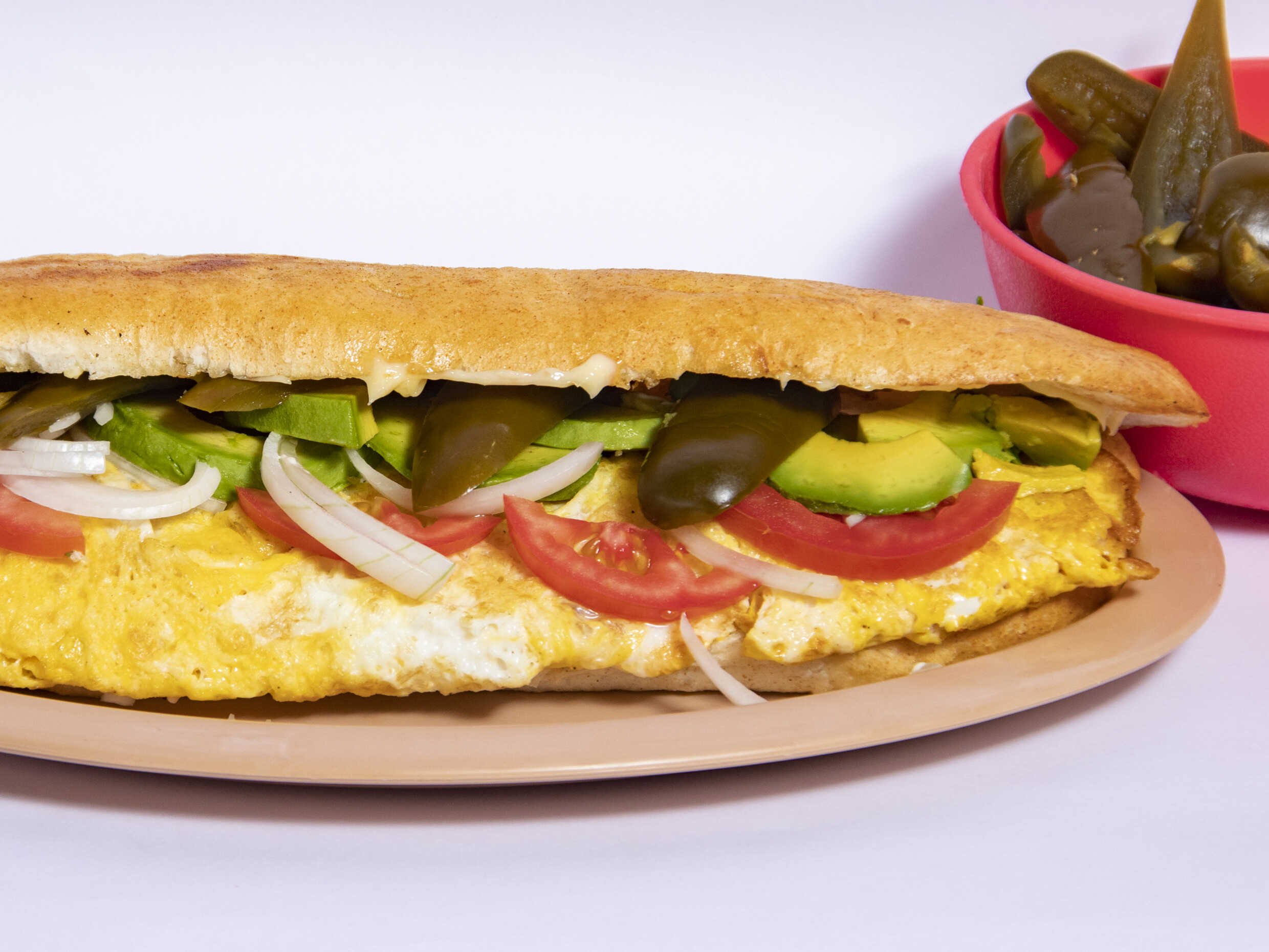1 pieza torta de milanesas de 30 cm con telera, aguacate, mayonesa, jitomate y cebolla. (Porción personal)
