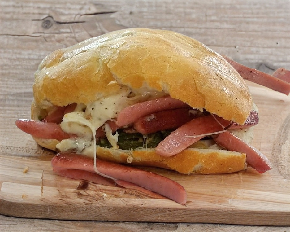 Delicioso salami acompañado de quesillo fundido, creando una combinación irresistible de sabor en cada bocado.