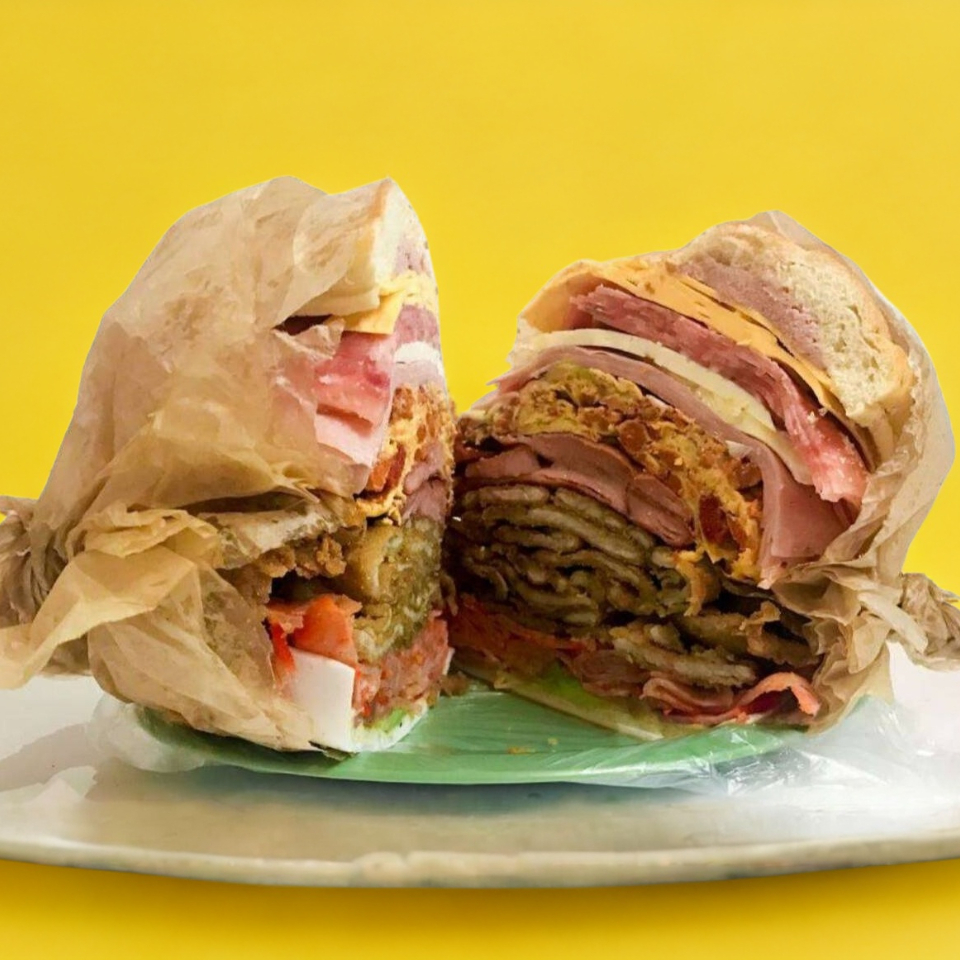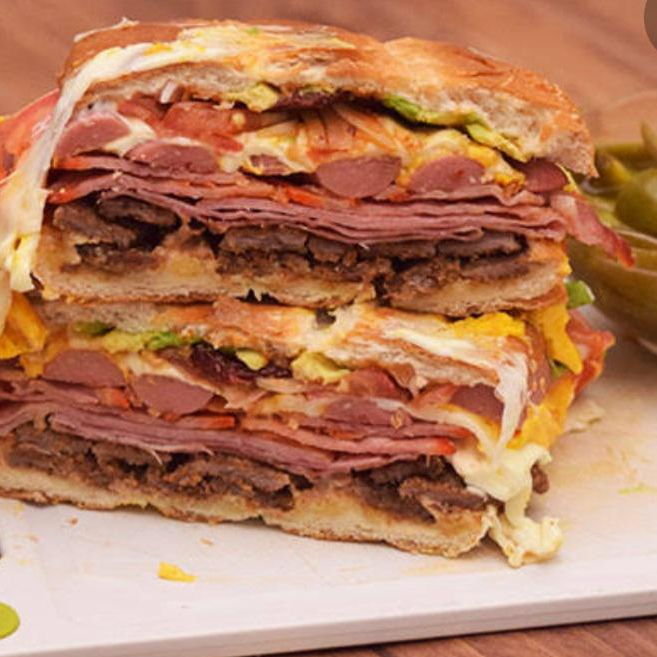 Torta 18 1/2 Tocino, Chorizo, Salchicha, Queso Oaxaca y Queso Amarillo