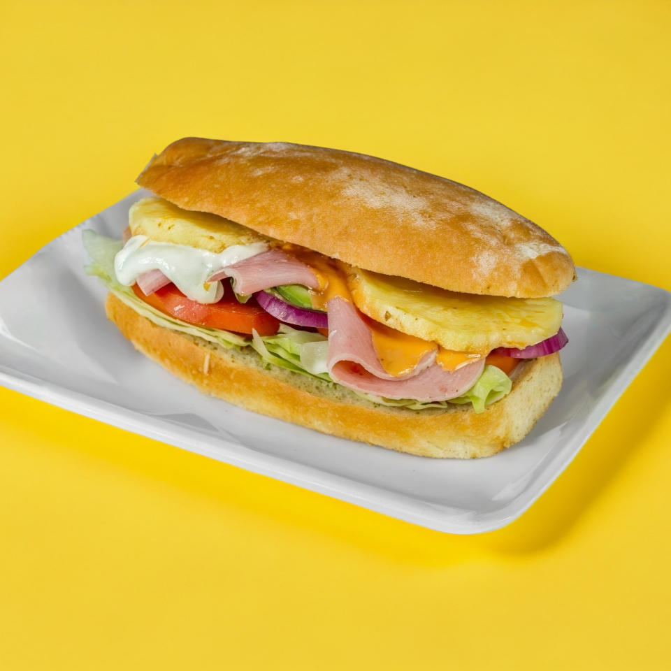 Torta Hawaiana Pierna, Jamón , queso Oaxaca y amarillo