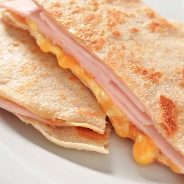 Sincronizada Jamon, Pierna, Aguacatate, jitomate, y cebolla.
