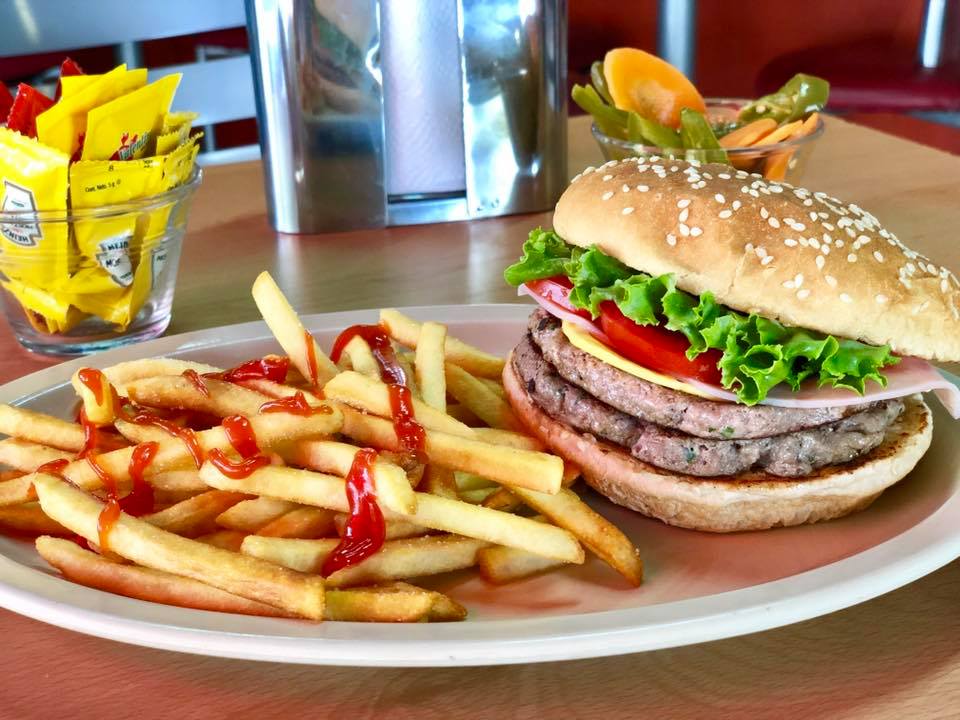 Hamburguesa a elegir, papas y refresco.