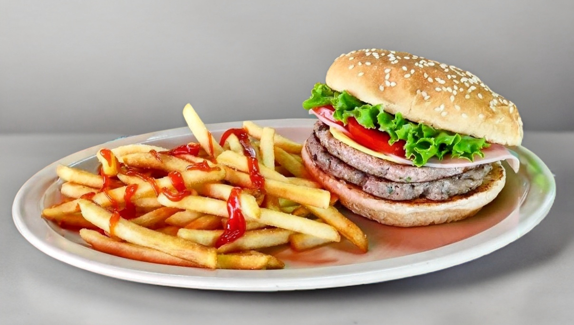 Hamburguesa doble, papas y refresco.