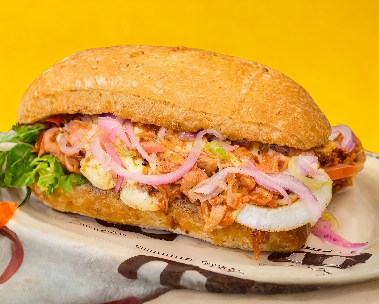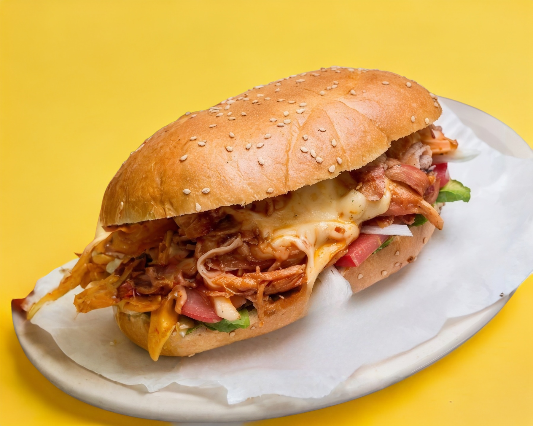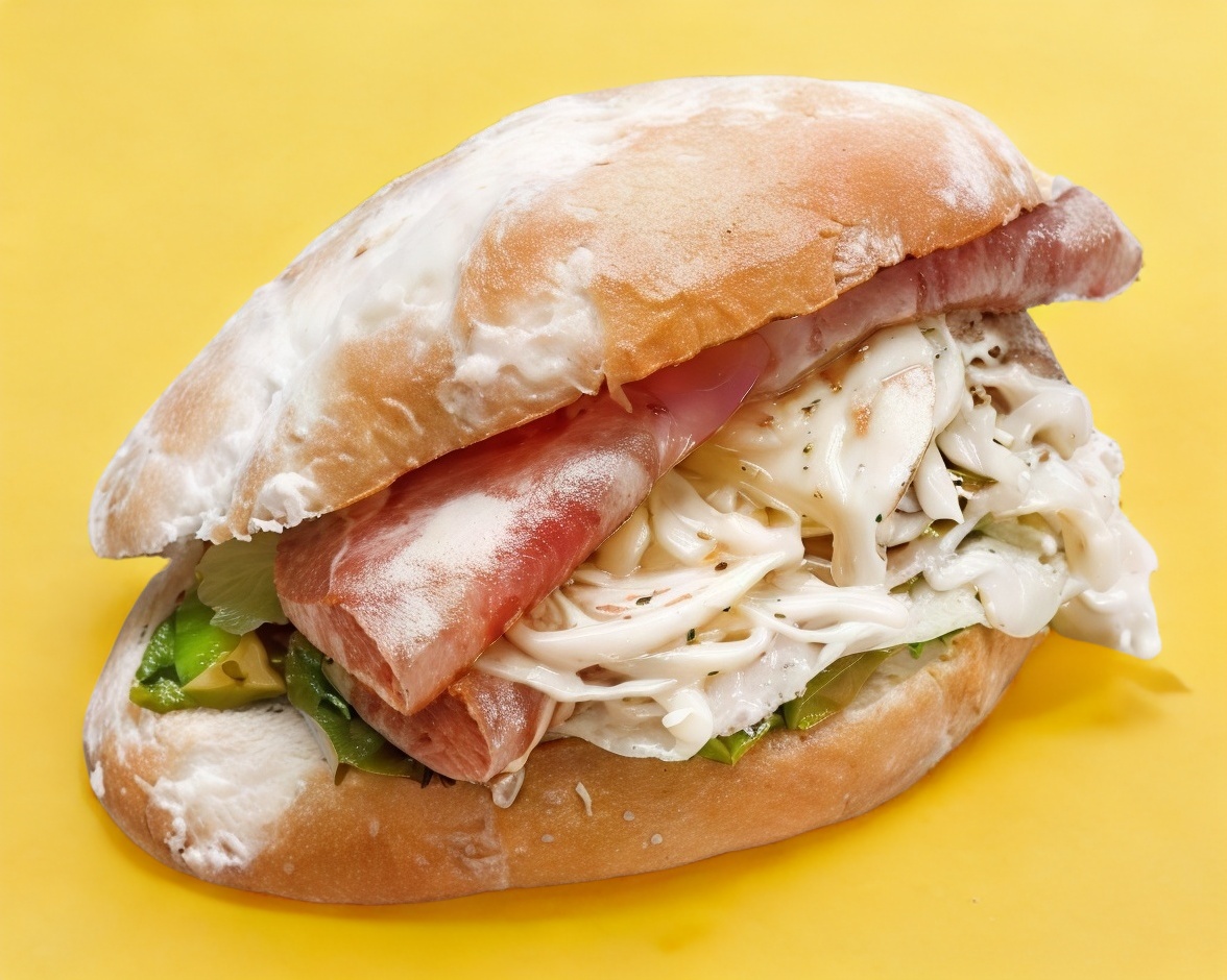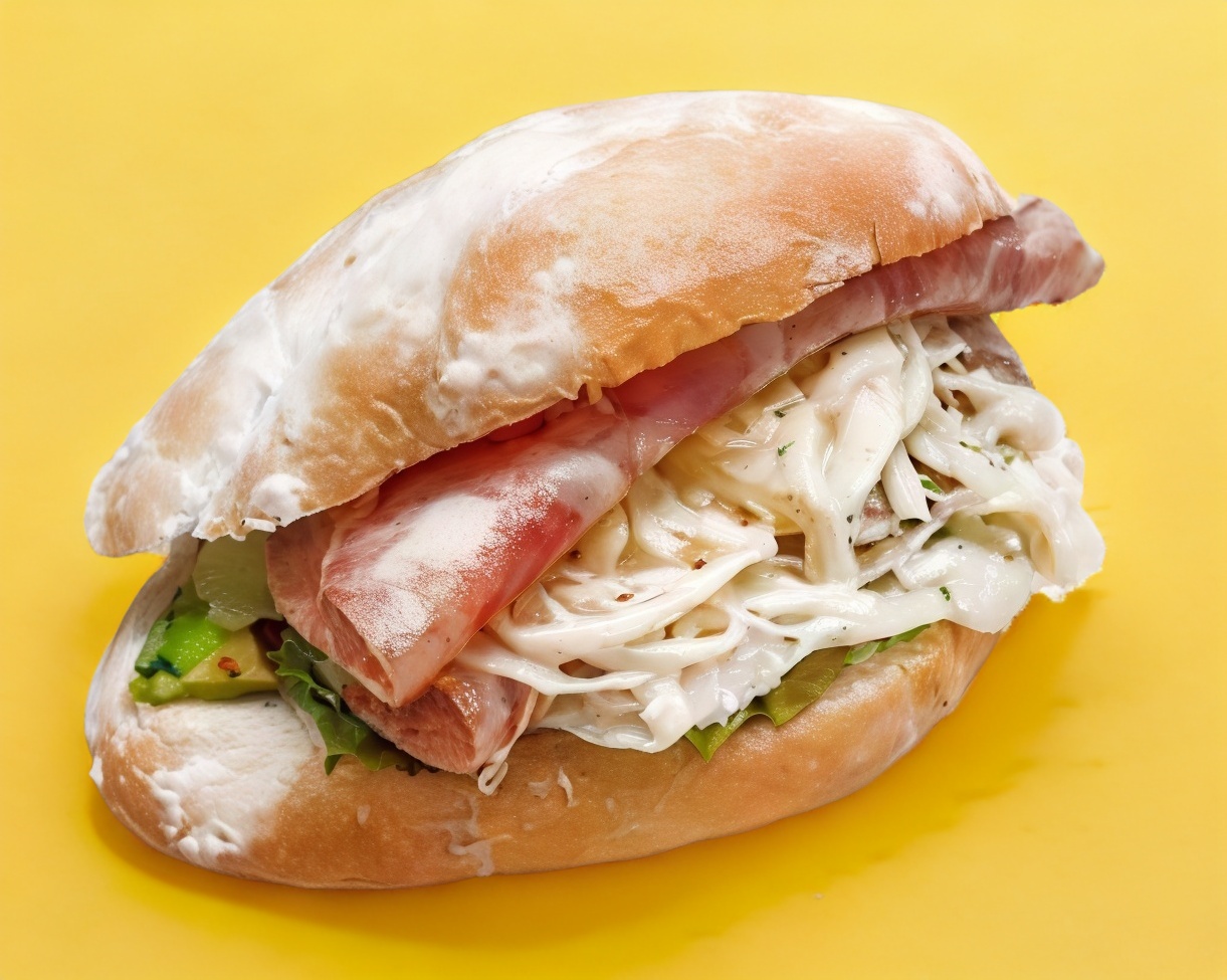 Bocata de queso de puerco, queso oaxaca, aguacate, lechuga, jitomate y mayonesa pan telera rustica.