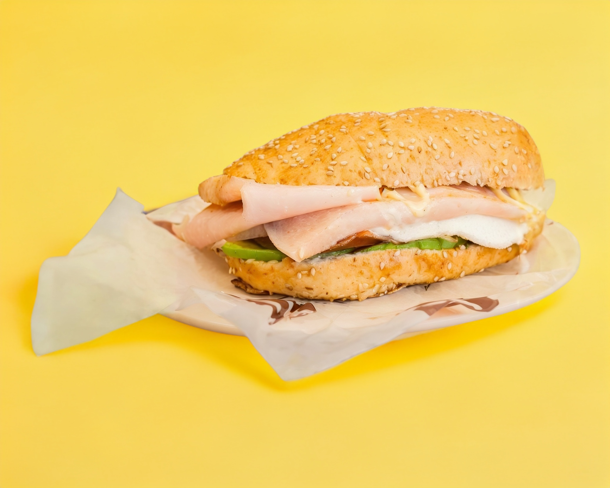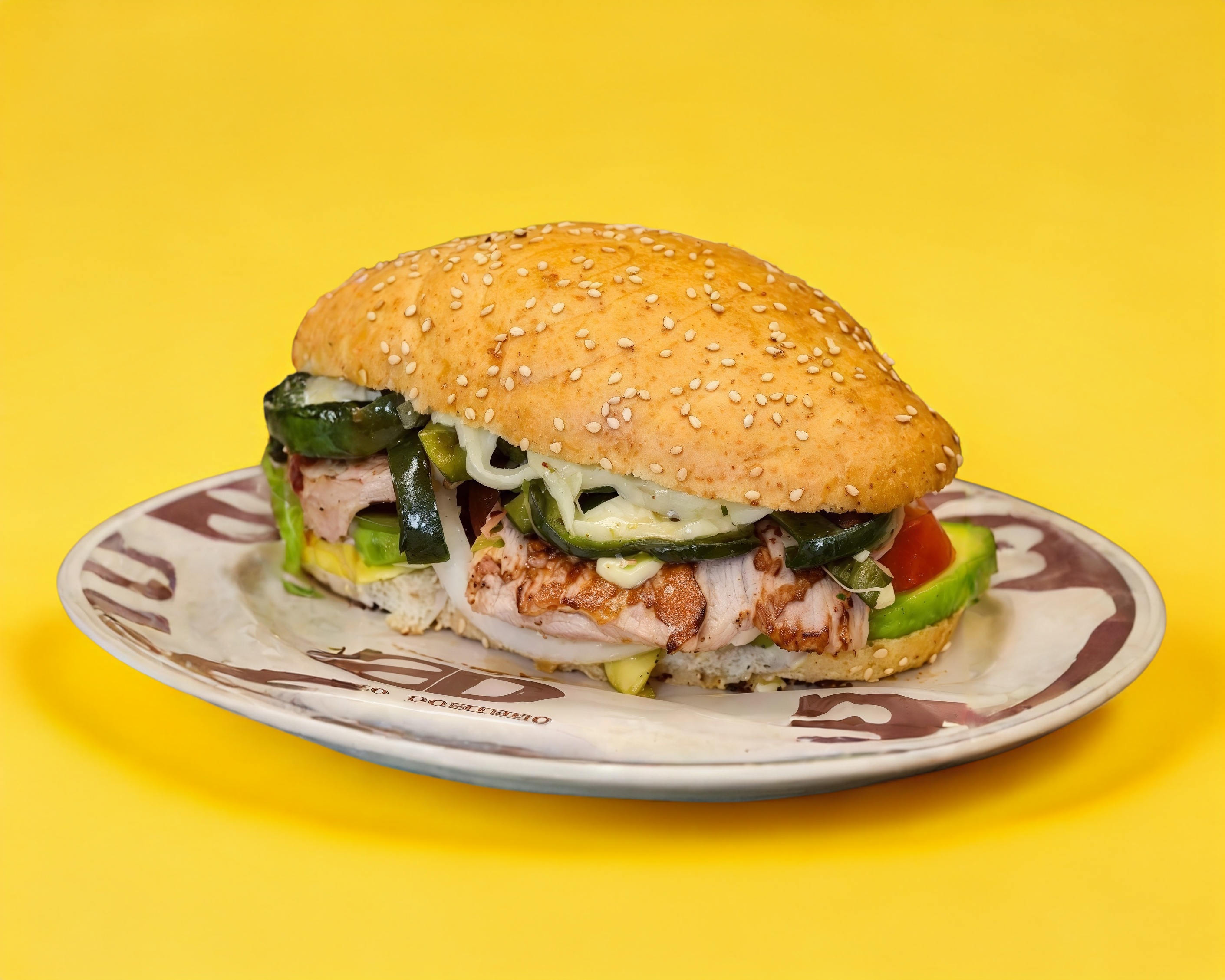 Bocata de pechuga de pavo, queso panela, aguacate, jitomate, lechuga y mayonesa pan telera rustica.