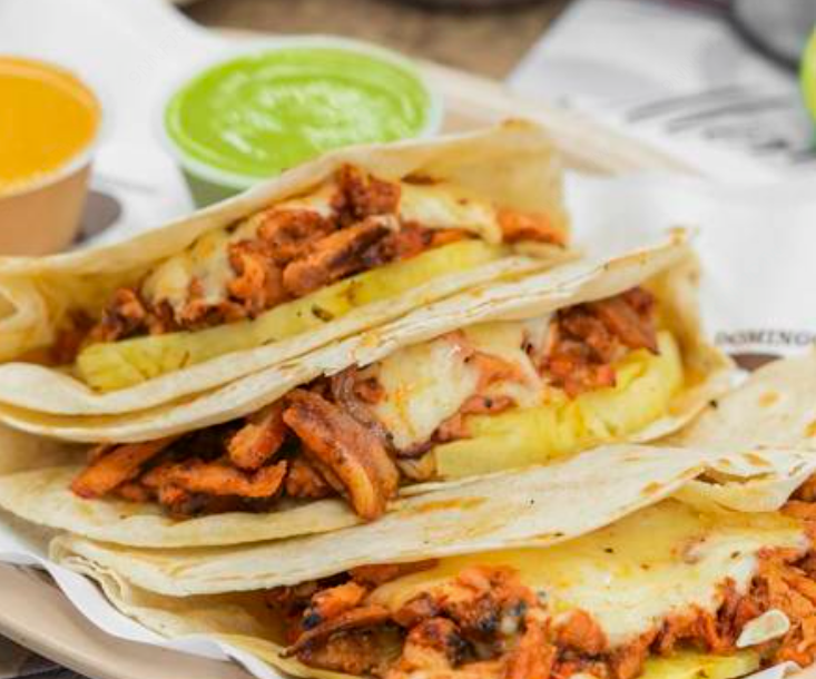 3 Quesadillas de carne al pastor, con tortilla de harina, piña y queso oaxaca