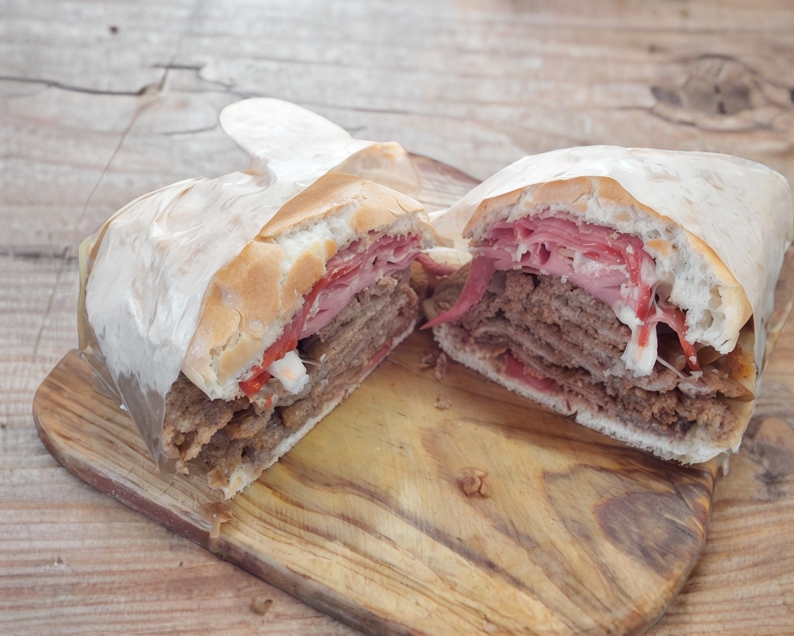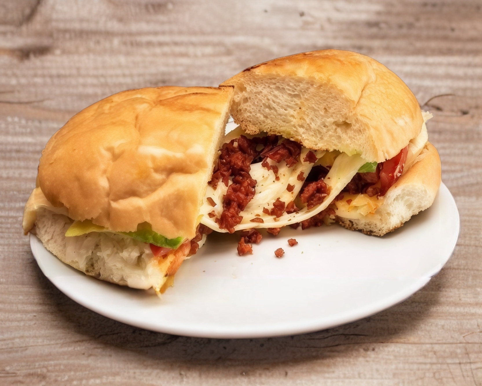 1 pieza Torta Toluqueña: con milanesa, quesillo, chorizo, aguacate, jitomate y picante (chipotle y raja).