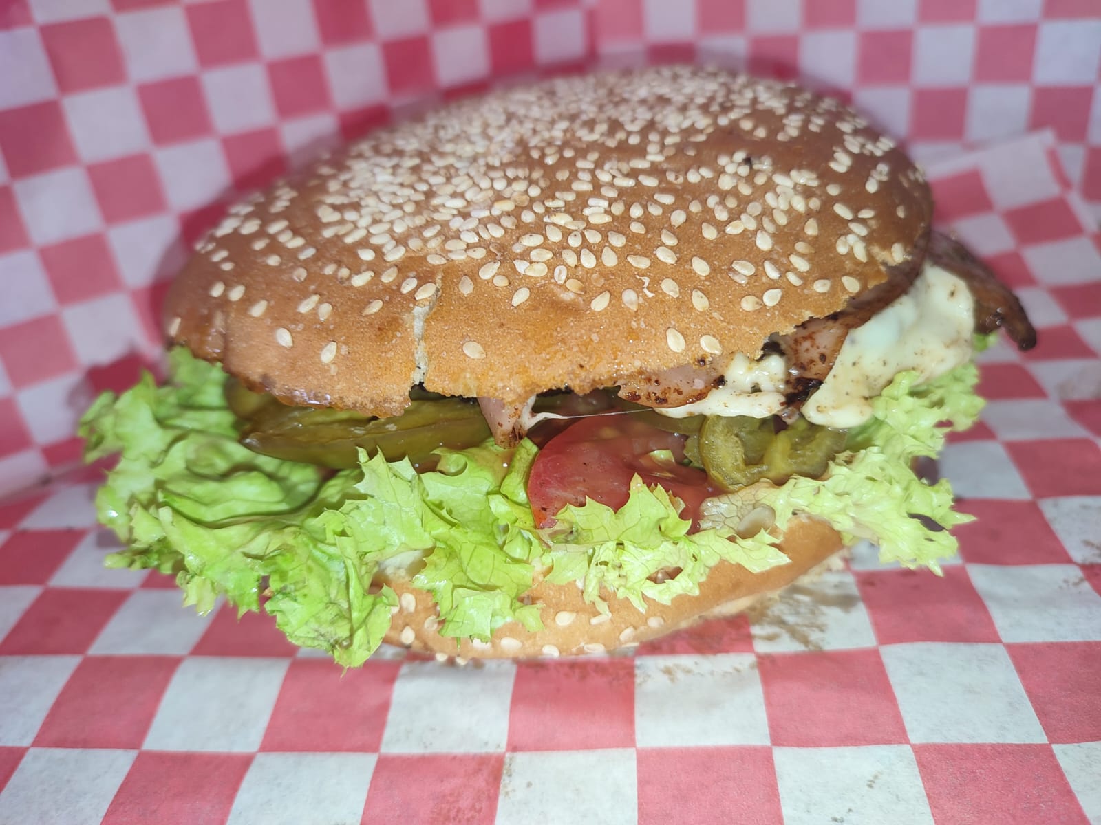 Doble carne, tocino, jamón, queso amarillo y quesillo.