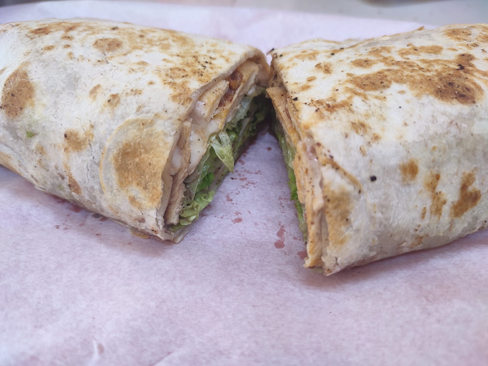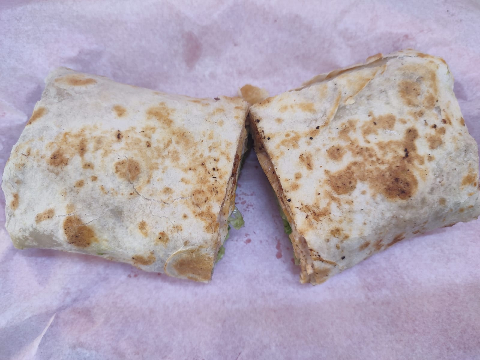 2 Tortillas de harina, 2 rebanadas de jamón, queso amarillo y quesillo.