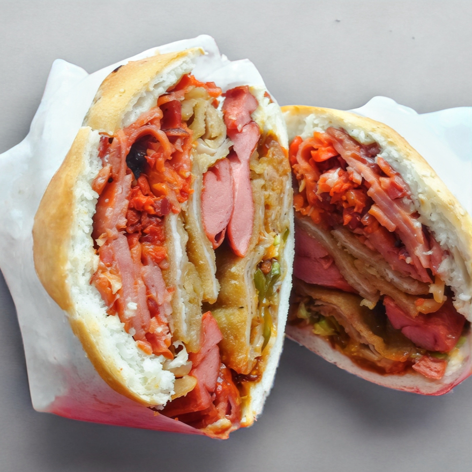 Una mezcla única de pierna, salchicha, queso amarillo y huevo.