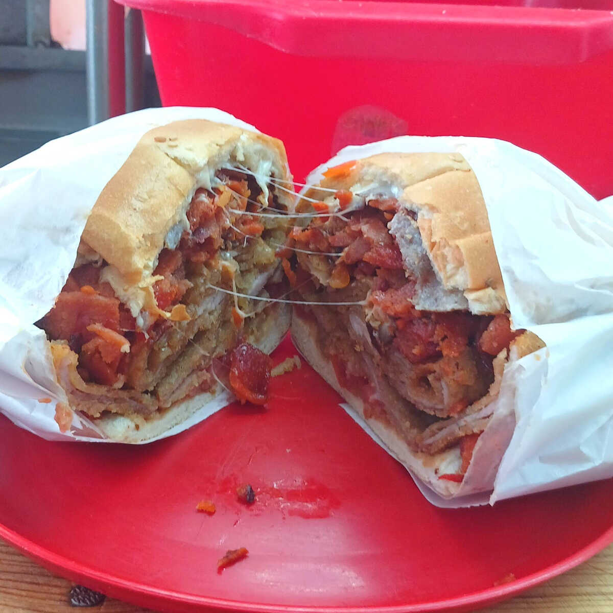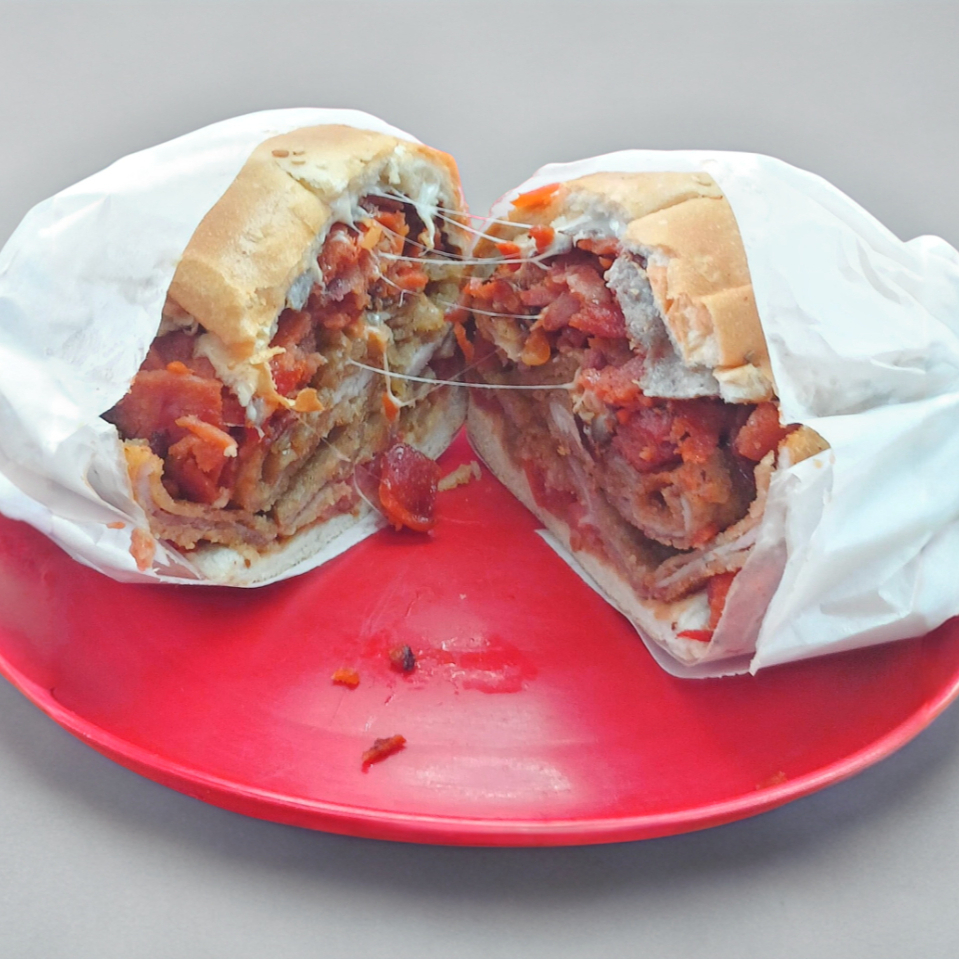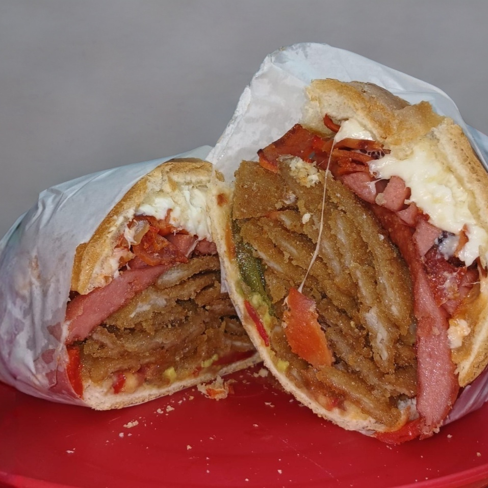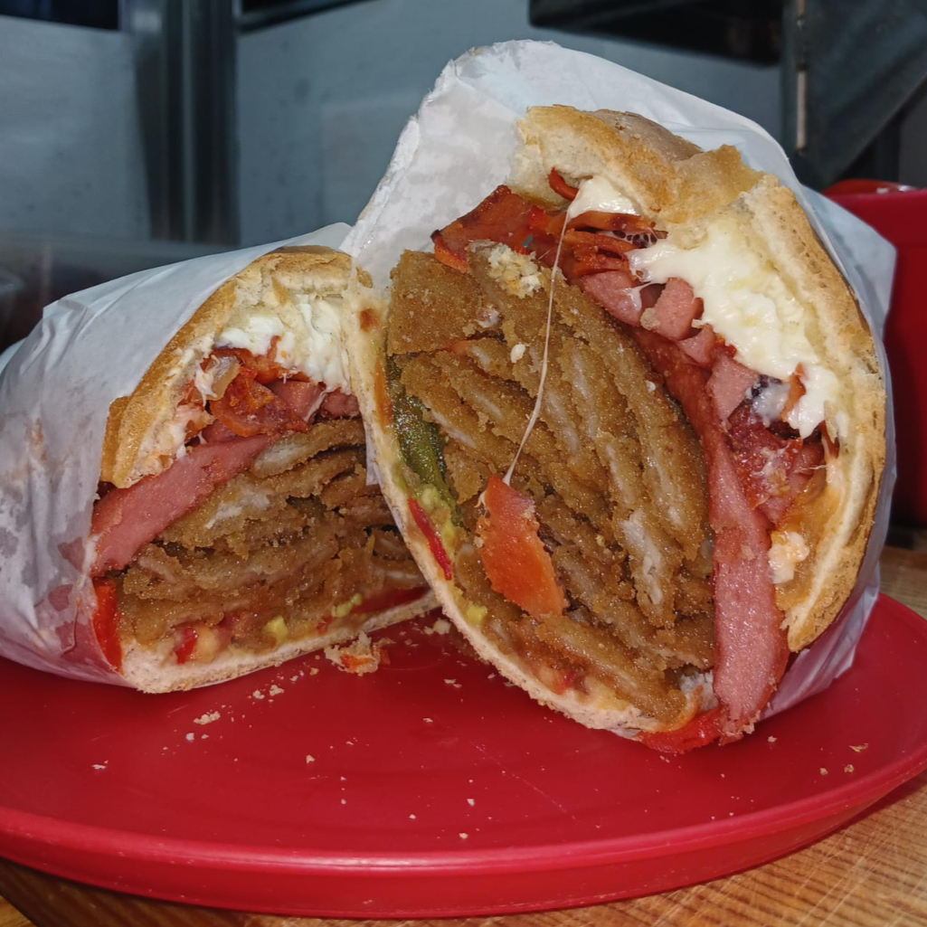 Pensada para el hambre voraz: salchicha, quesillo, milanesa y pierna.