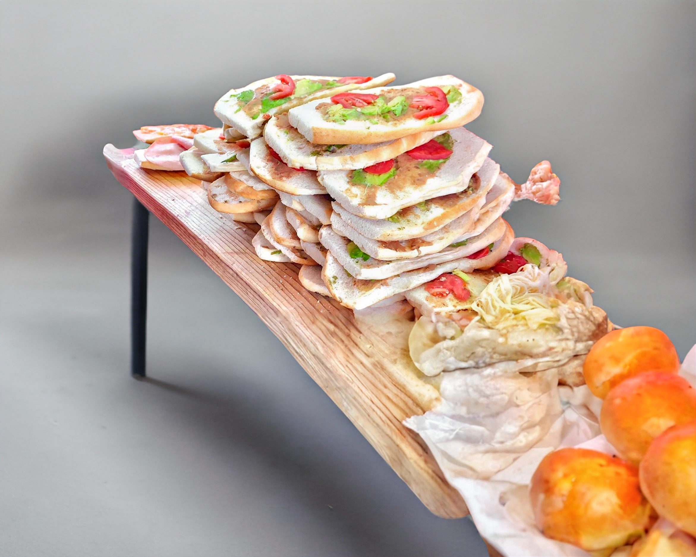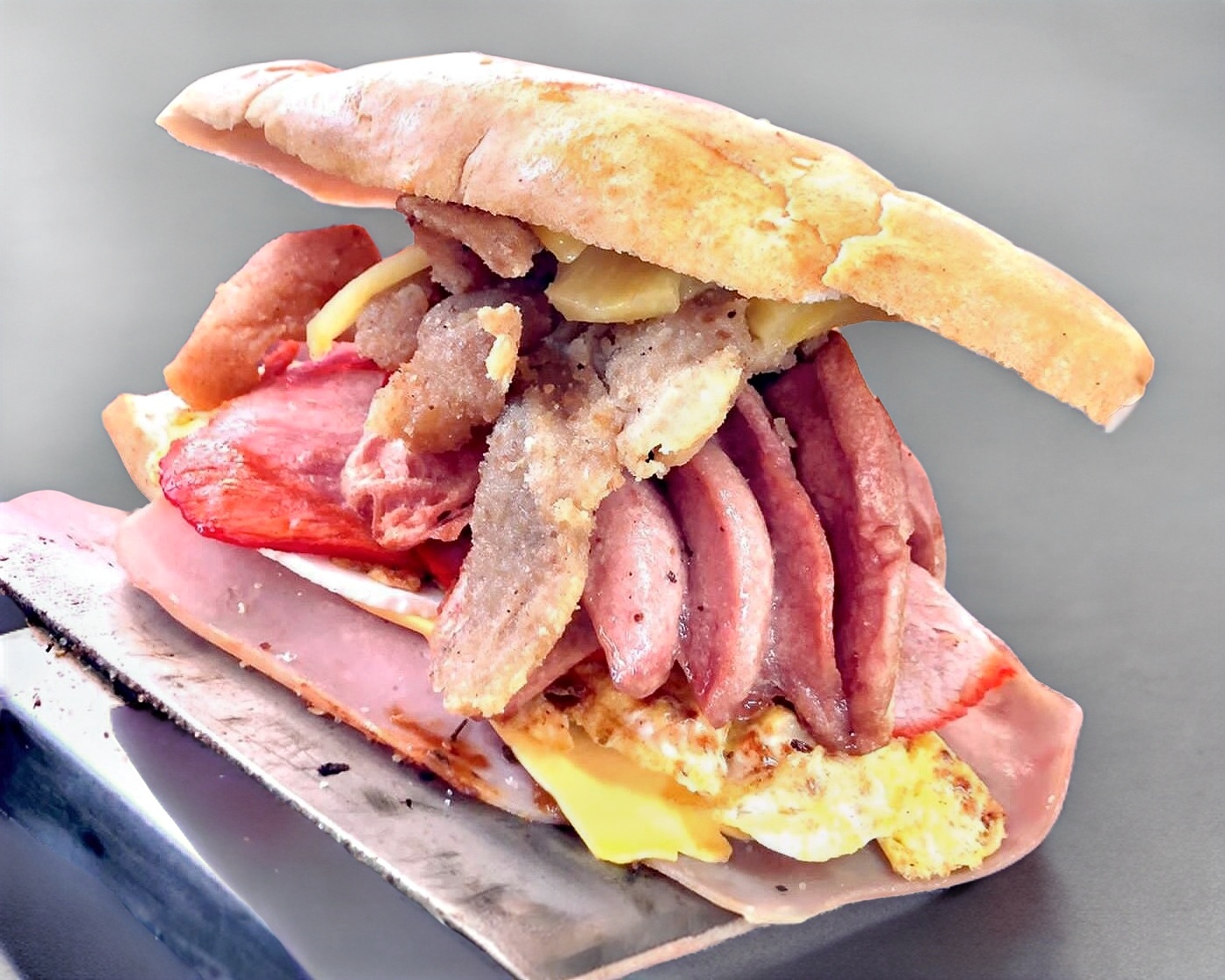 Chuleta, piña, queso Oaxaca, frijoles, mayonesa, jitomate y aguacate.