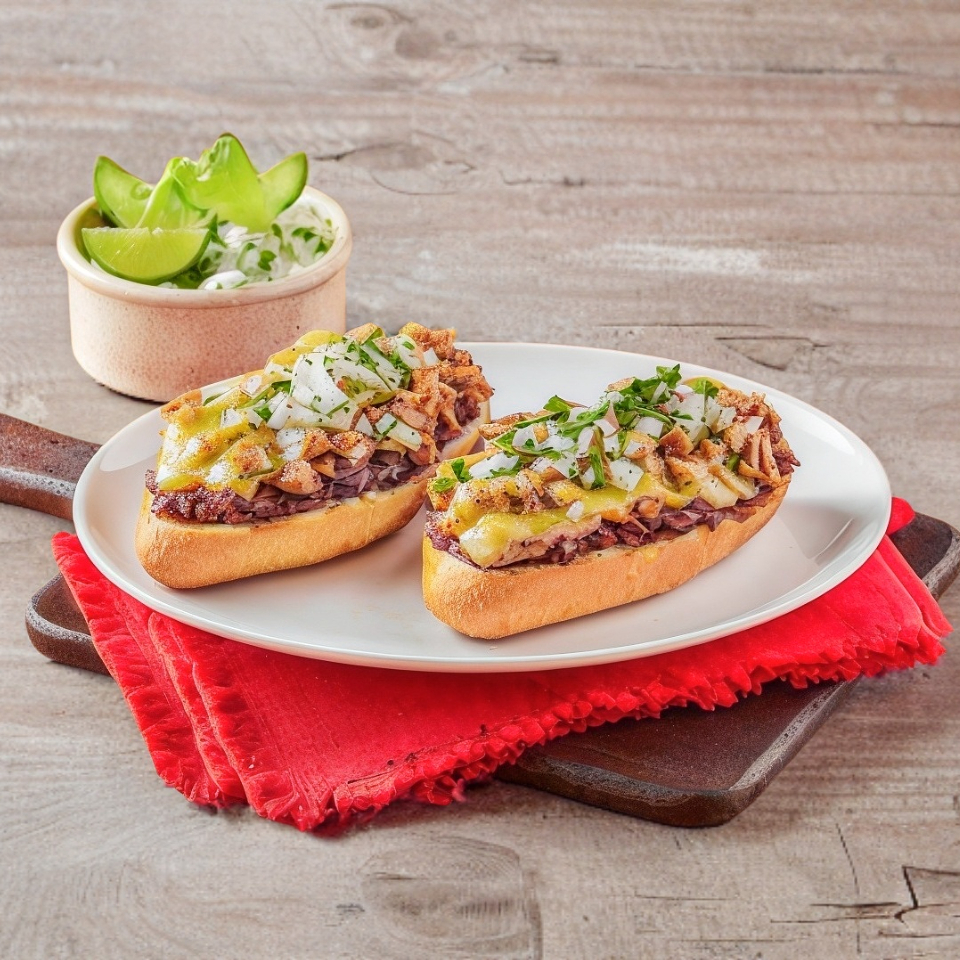 Bistek ,queso manchego ,jitomate aguacate cebolla frijol mayonesa