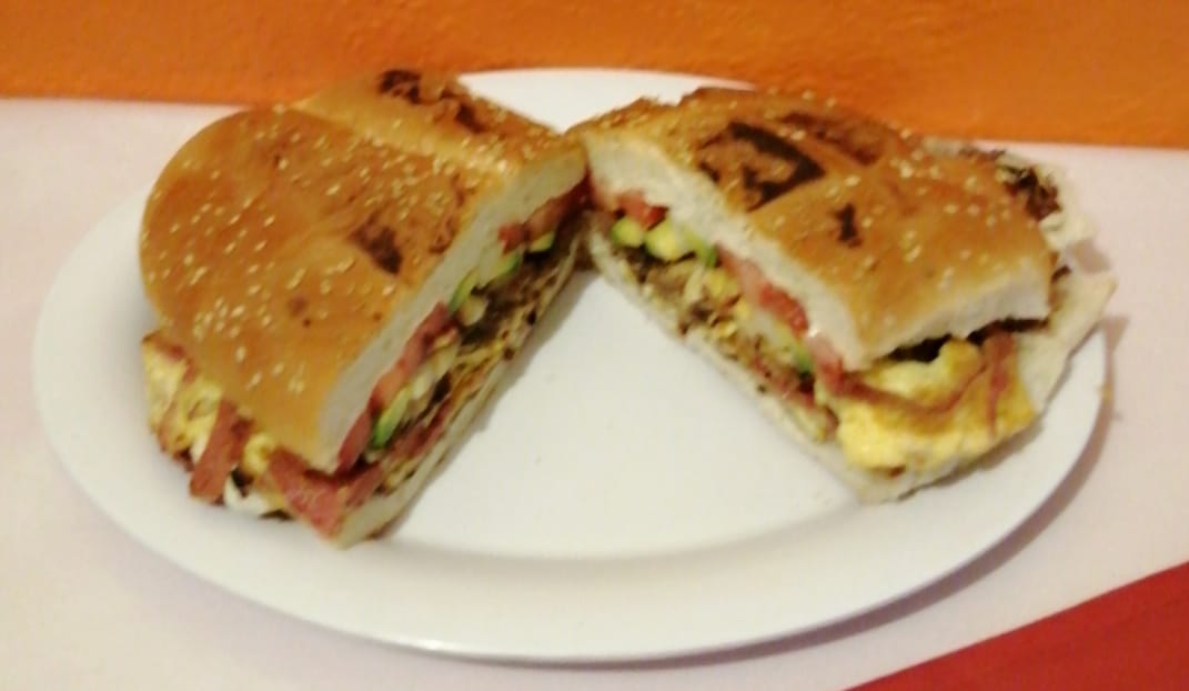 Mayonesa frijol jitomate jamón queso aguacate y cebolla