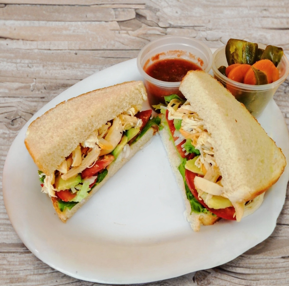 Jamón ,queso manchego ,jitomate aguacate cebolla frijol mayonesa