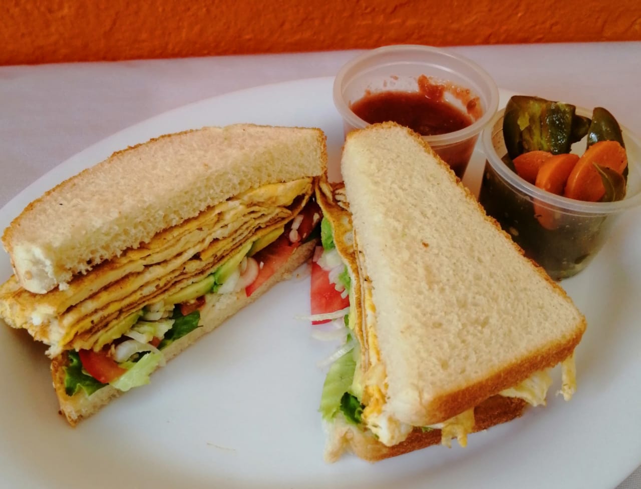 Frijol mayonesa lechuga pepino jitomate aguacate y cebolla