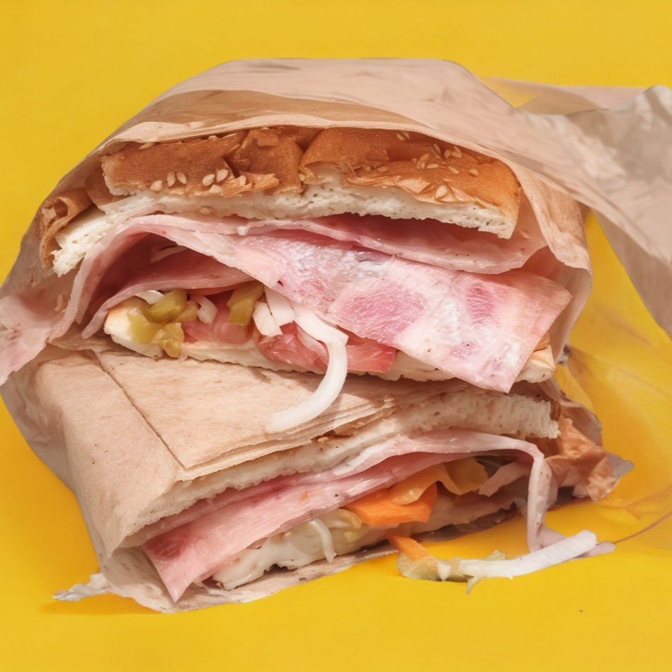 Jamon, queso amarillo, lechuga, jitomate, cebolla, aguacate y mayonesa.