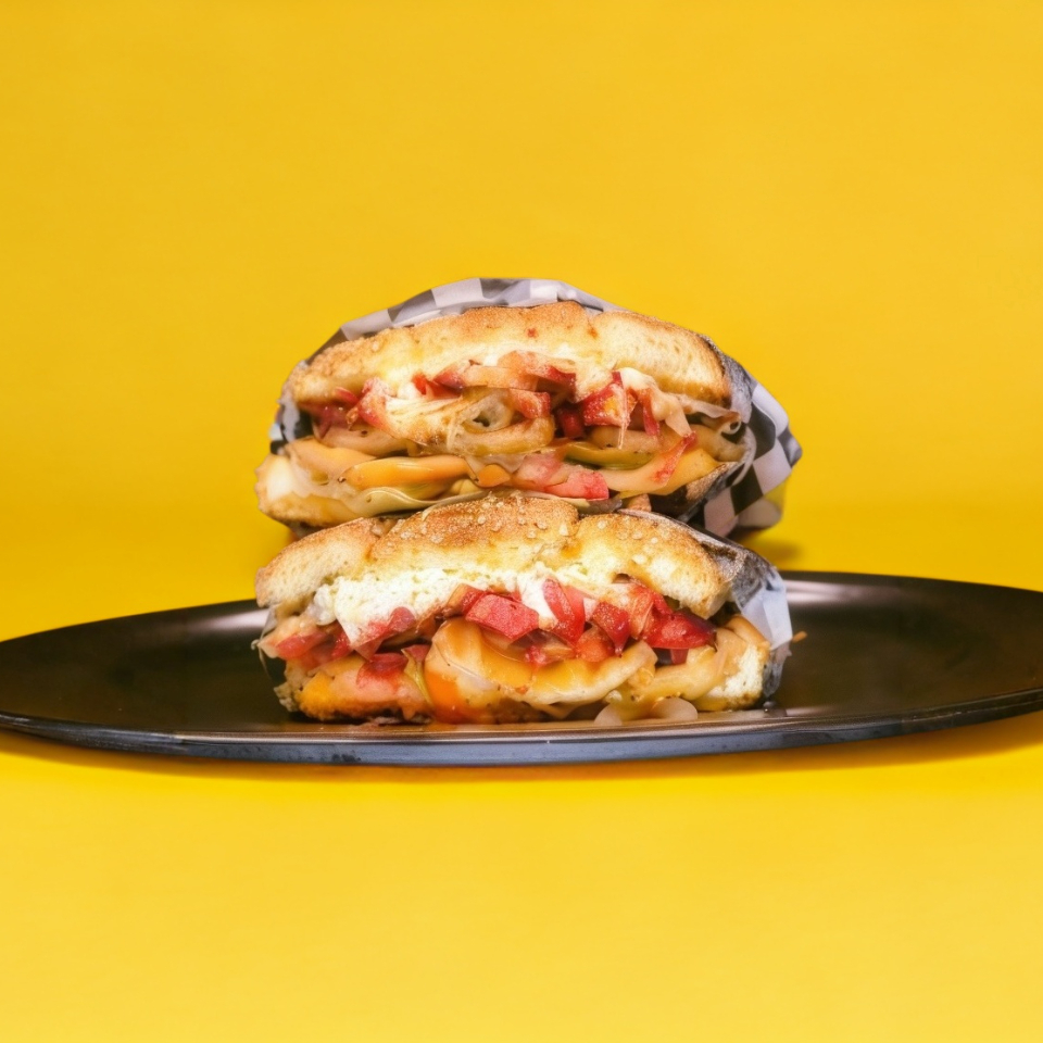 Milanesa, mayonesa, jitomate, cebolla y picante.